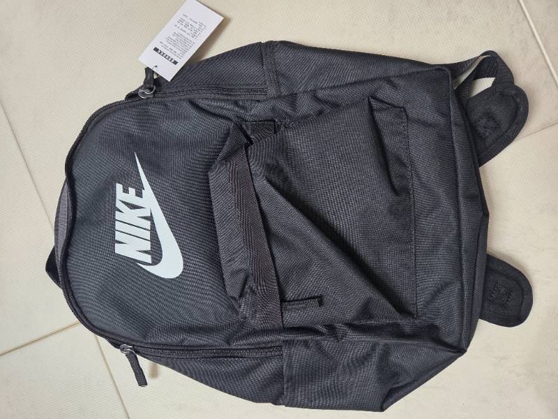 상단 가운데 나이키로고 하나 박혀있는 클래식한 백팩입니다ㅎ 제가 학생일때 많이 메고 다녔던 책가방 느낌이 많이 들더라구요ㅎ 특별히 튀거나 하진 않고 그냥 나이키가방이네 싶은 디자인입니다. 재질은 약간 까슬한 것 같으면서도 만지면 매끈한 느낌이아는 폴리재질? 오염이 쉽게 될거 같지는 않고 먼지가 묻어도 잘 지워질 것 같아서 막쓰는 용도로는 좋은 재질인 것 같아요