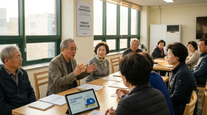 마지막으로, 가장 높은 마진을 남길 수 있는 모델은 ‘고가(High-Ticket) 프로그램’의 운영입니다. 액티브 시니어들은 단순한 놀이보다 ‘성장’과 ‘배움’에 대한 욕구가 강합니다. 부동산 재테크, 스마트폰 영상 편집, 자서전 쓰기, 건강 관리 등 회원들이 관심 있어 하는 주제로 심도 있는 4주~8주 과정을 개설하십시오.
