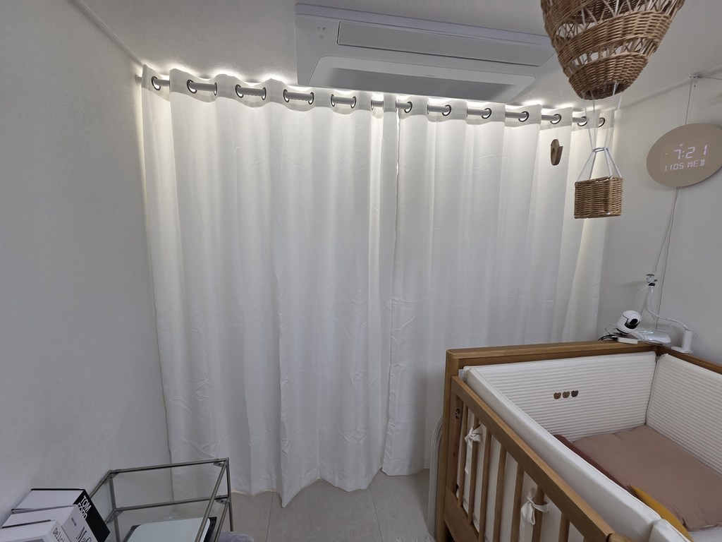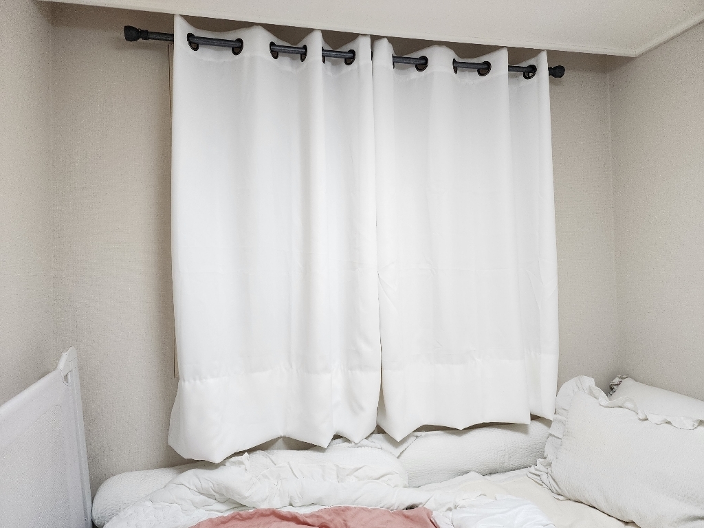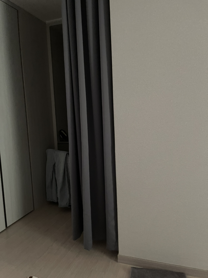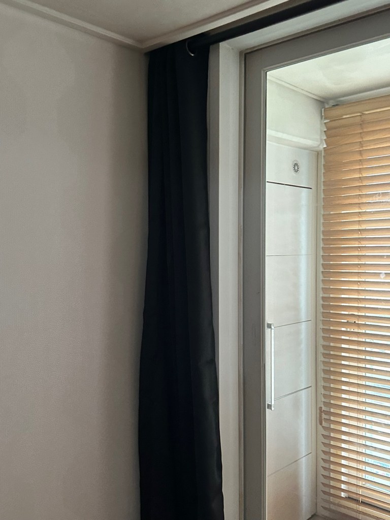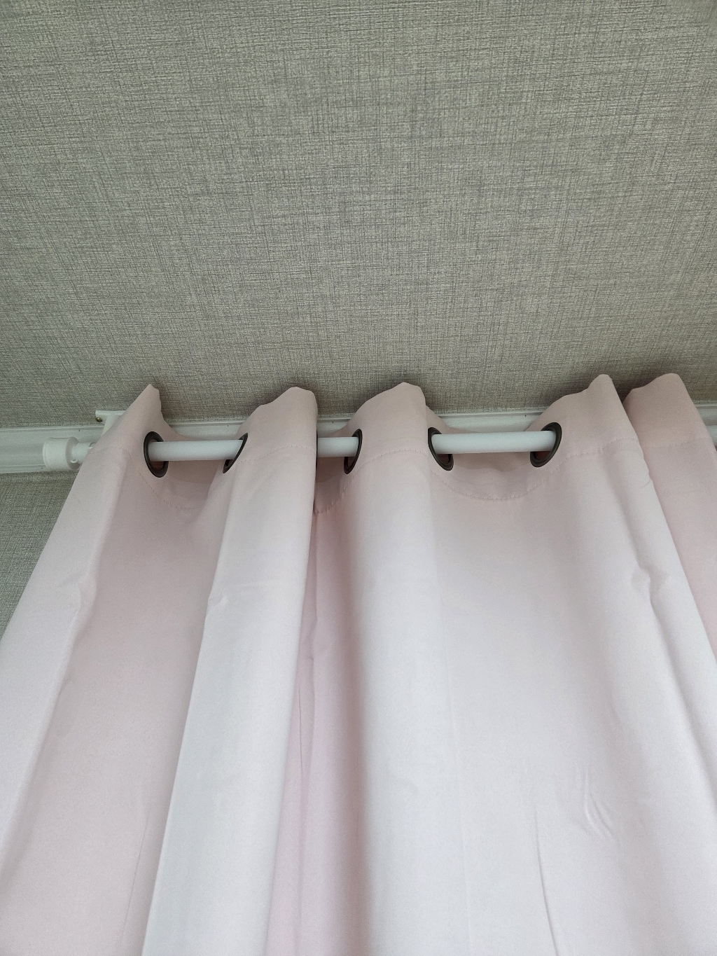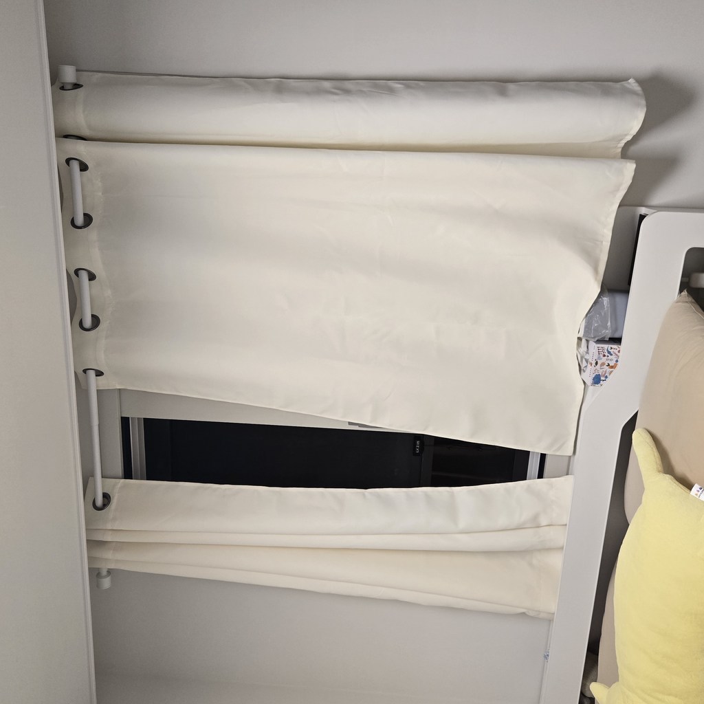 빛샘이 걱정돼서 벽면 쪽 여유 있게 달았는데, 그 덕분에 거의 완벽한 암막 효과를 느꼈어요!
