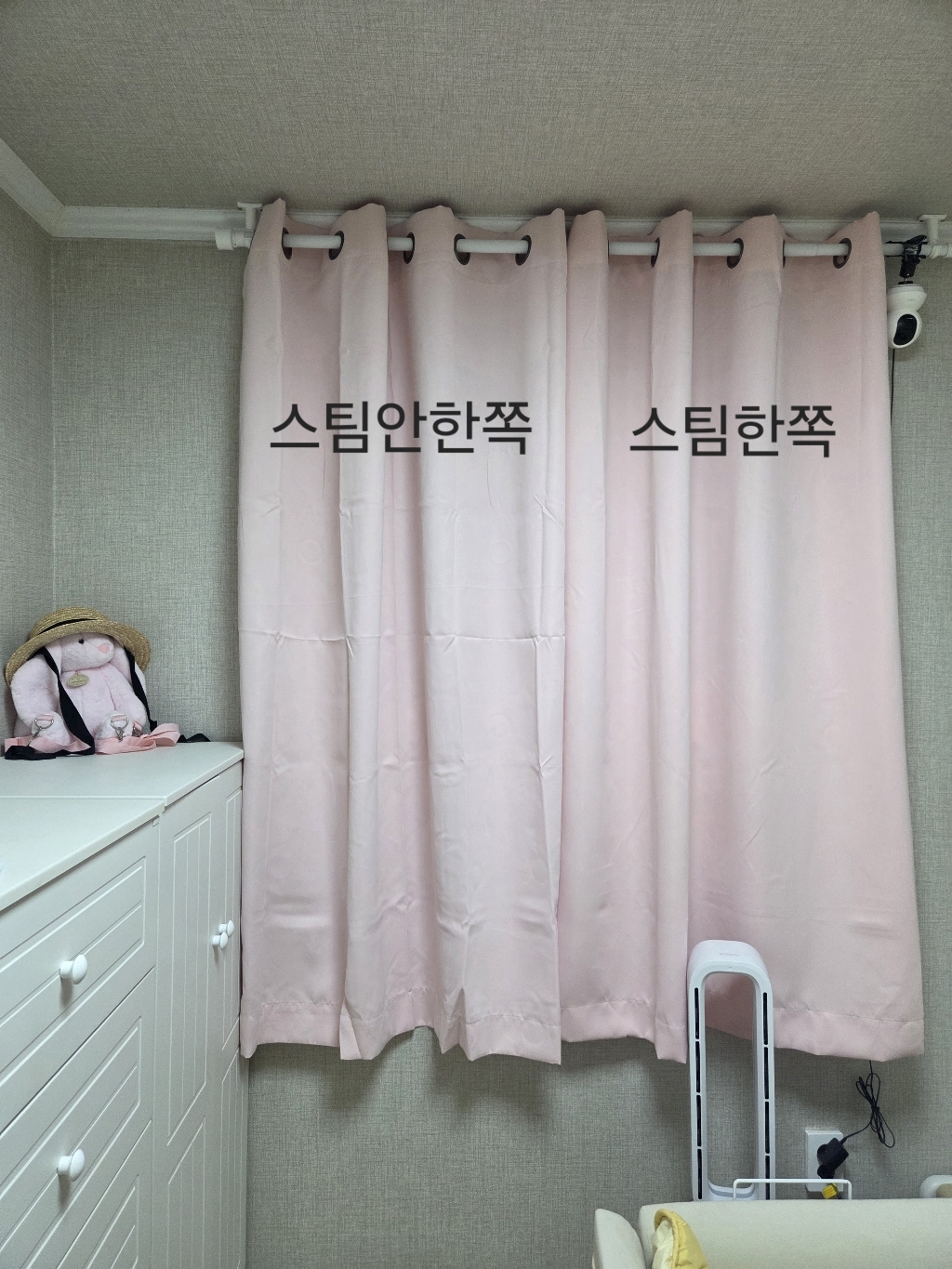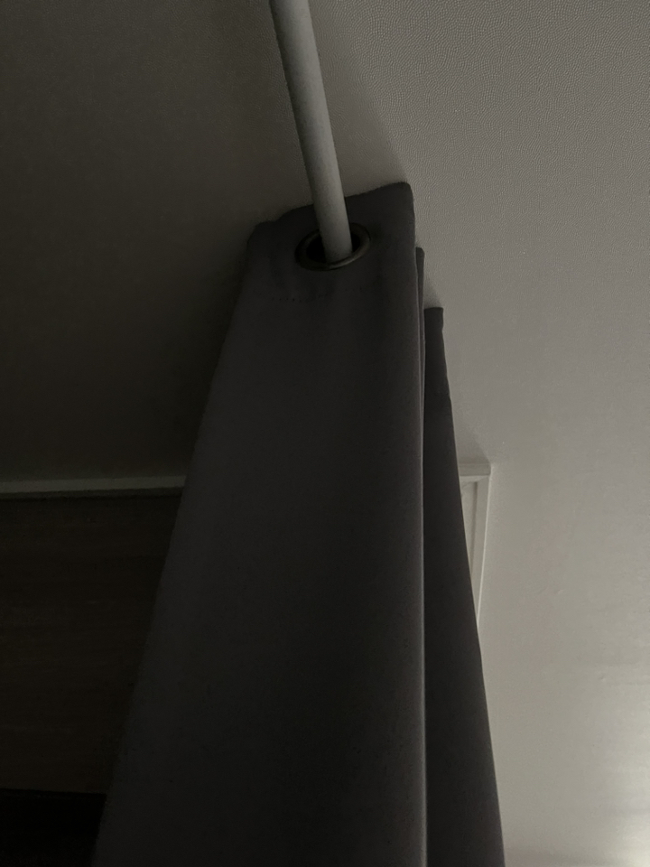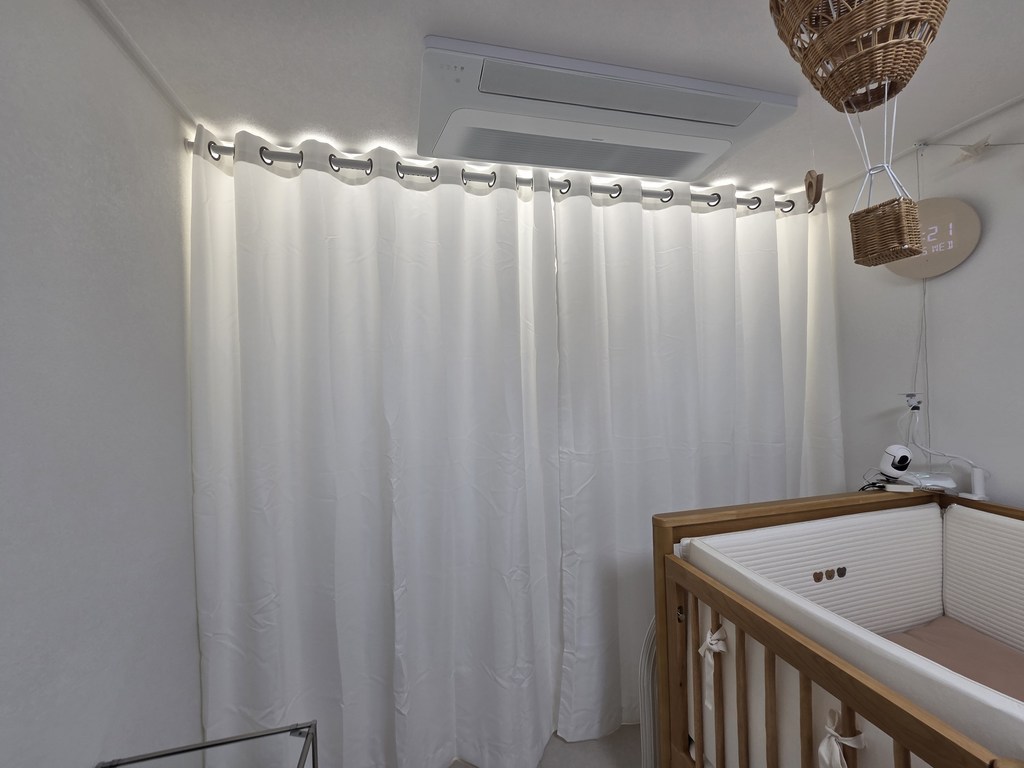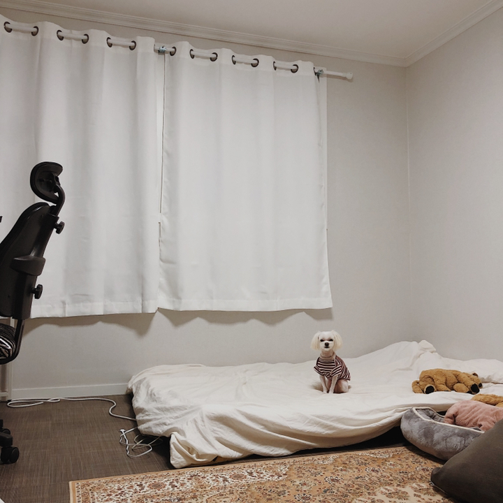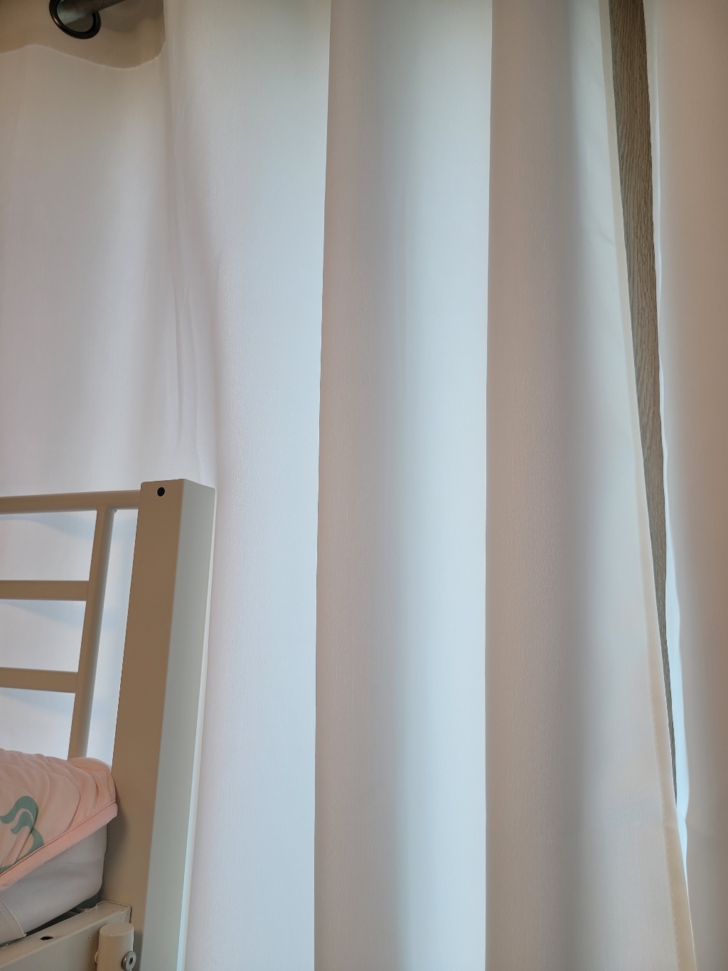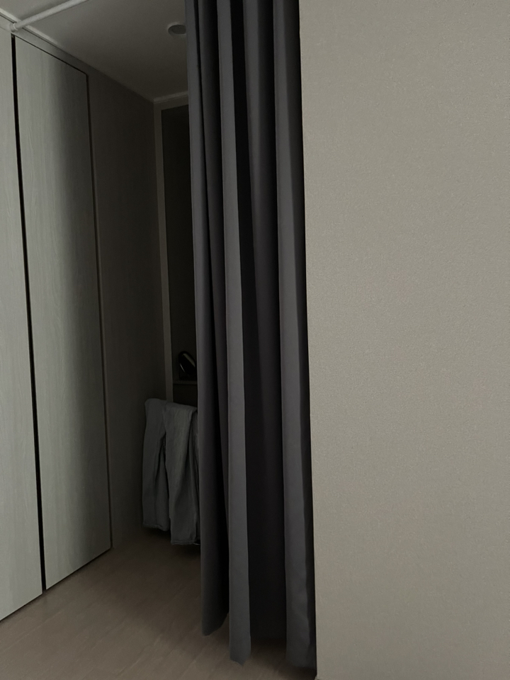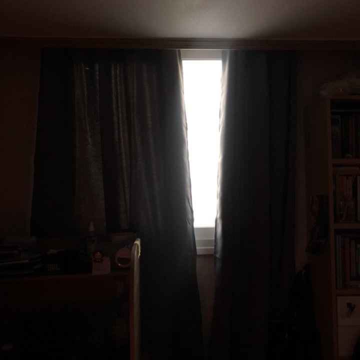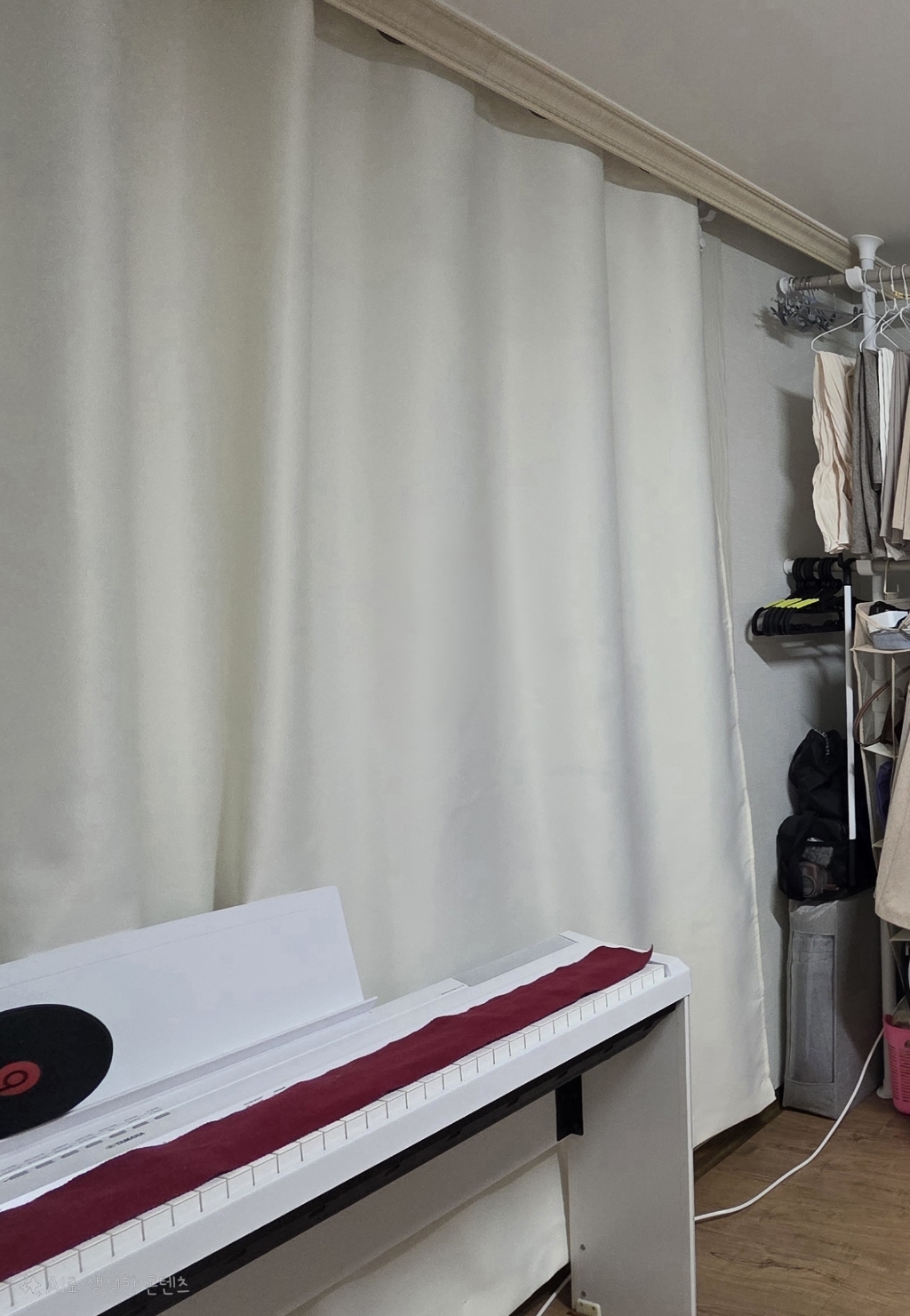 빛샘이 걱정돼서 벽면 쪽 여유 있게 달았는데, 그 덕분에 거의 완벽한 암막 효과를 느꼈어요!