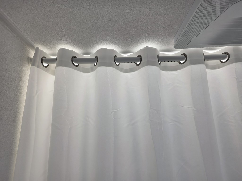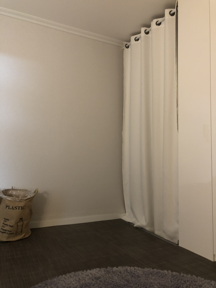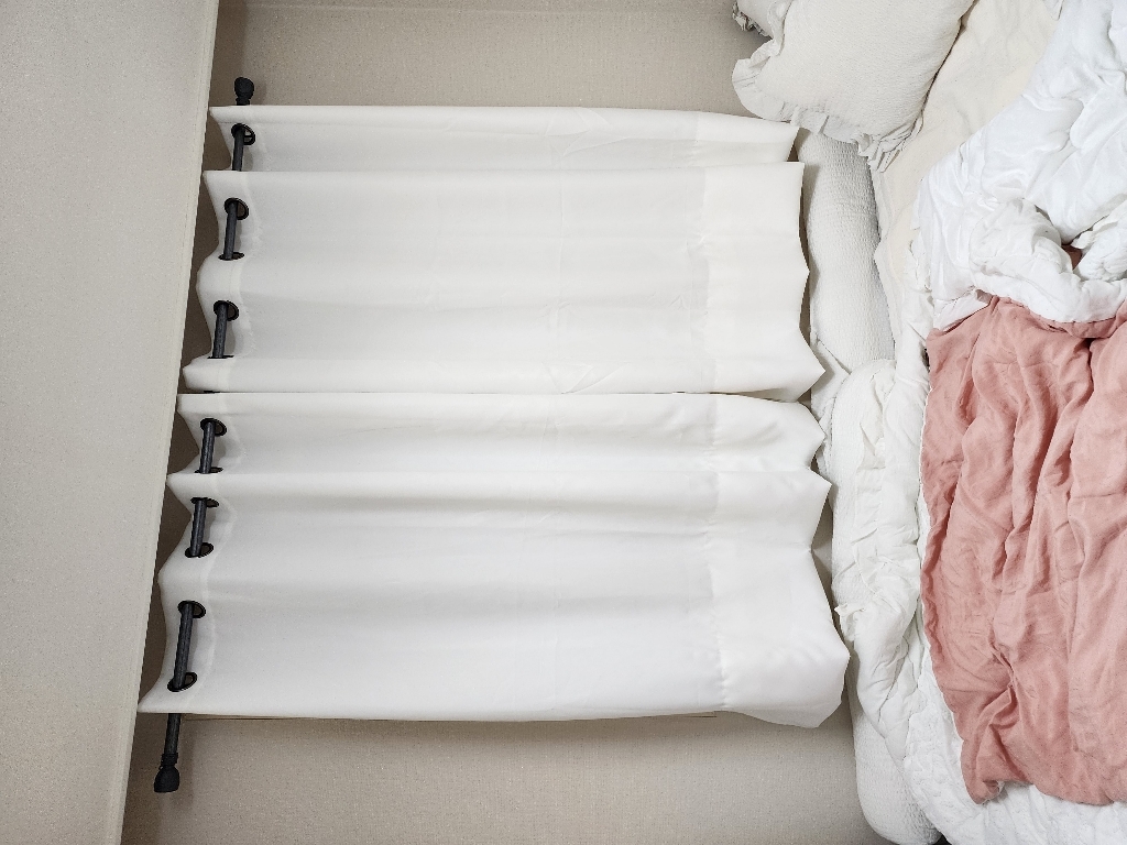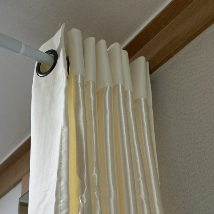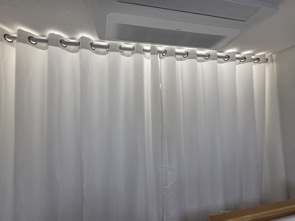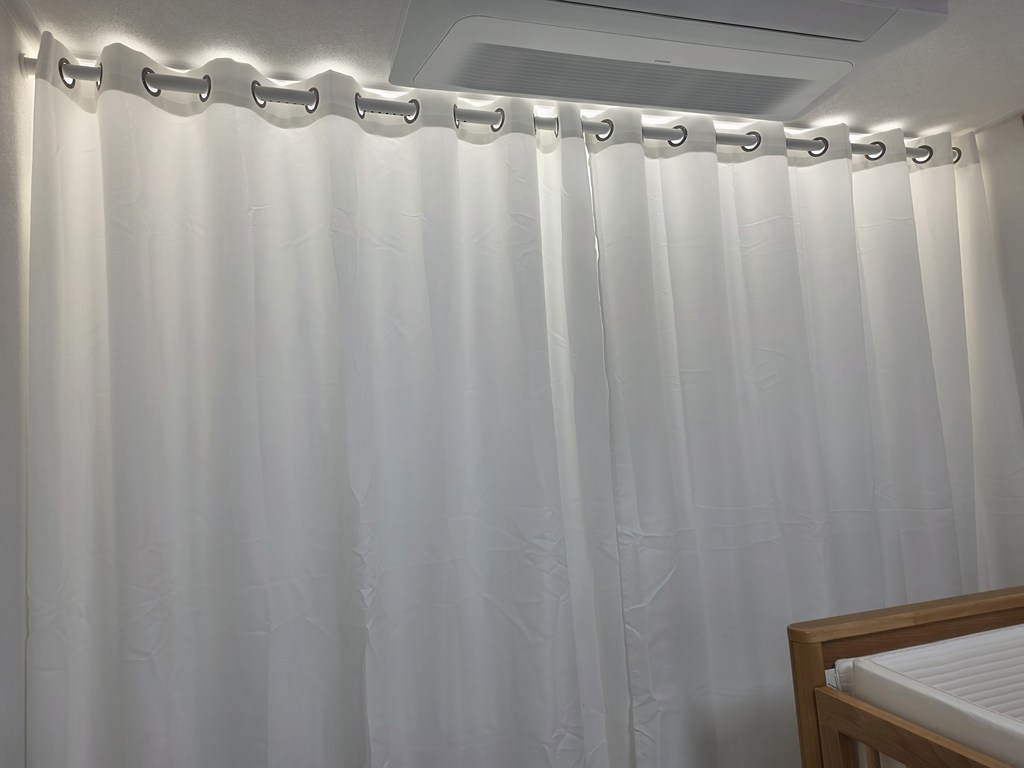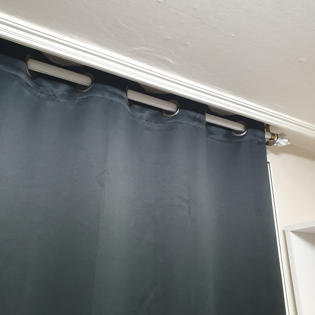 빛샘이 걱정돼서 벽면 쪽 여유 있게 달았는데, 그 덕분에 거의 완벽한 암막 효과를 느꼈어요!