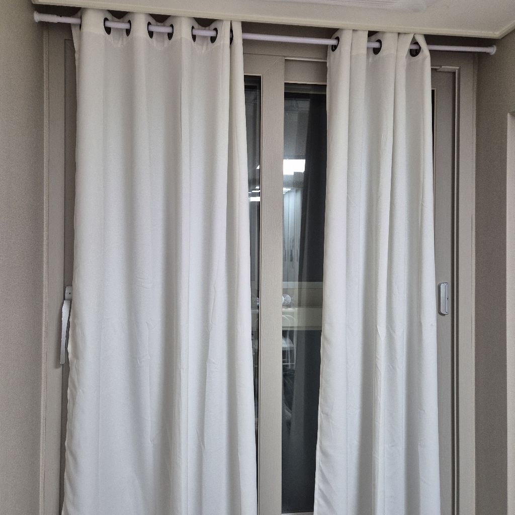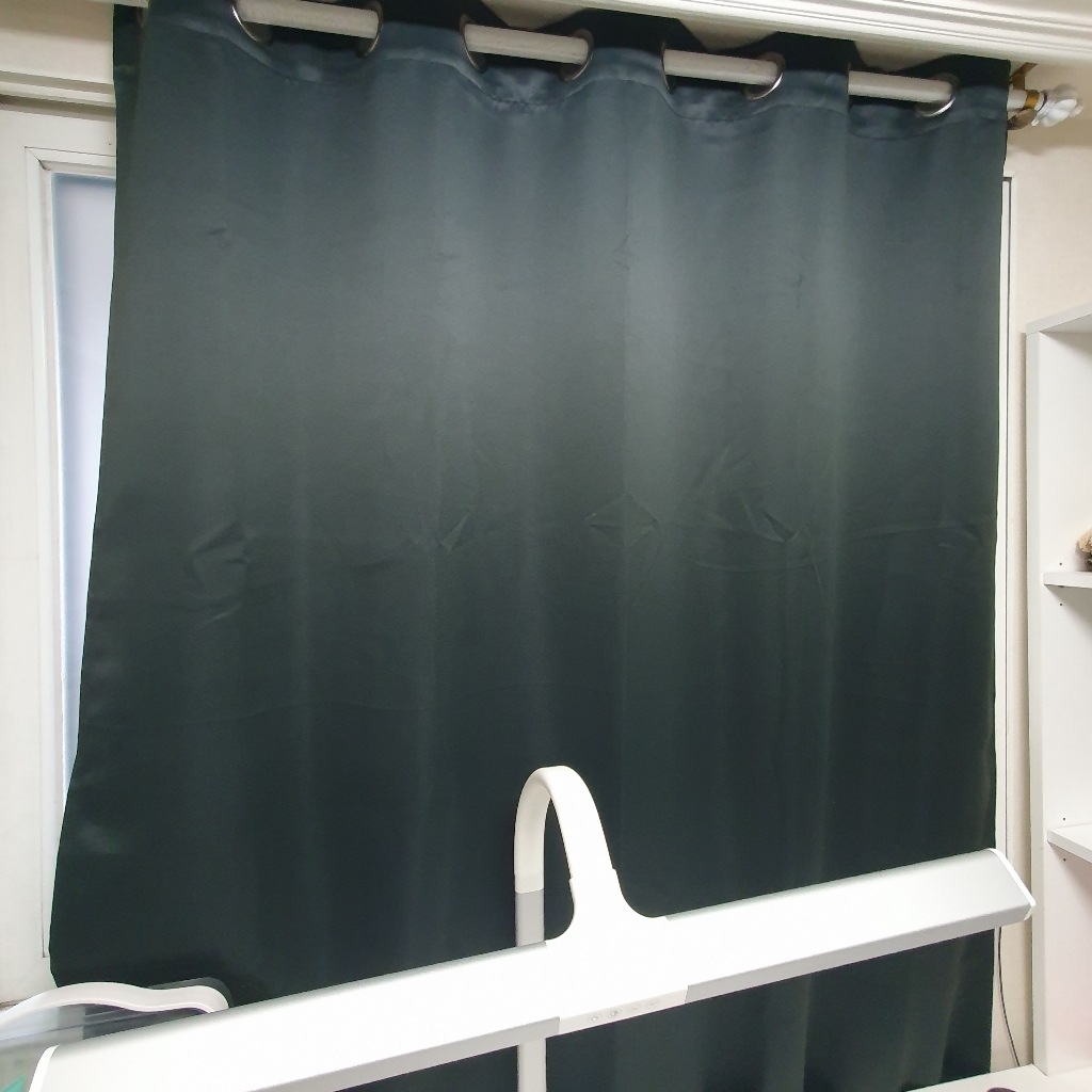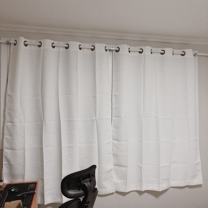 아일렛형이라 설치도 간편했고, 커튼 봉에 쓱 끼우기만 하면 되니 혼자서도 쉽게 설치할 수 있었습니다. 블랙 색상임에도 불구하고 답답한 느낌 없이 깔끔하고 모던한 분위기를 연출해 주어 인테리어적으로도 만족스럽습니다. 소재도 두툼하고 견고해서 외부 소음 차단에도 약간의 도움이 되는 것 같아 여러모로 유용하게 사용하고 있습니다.