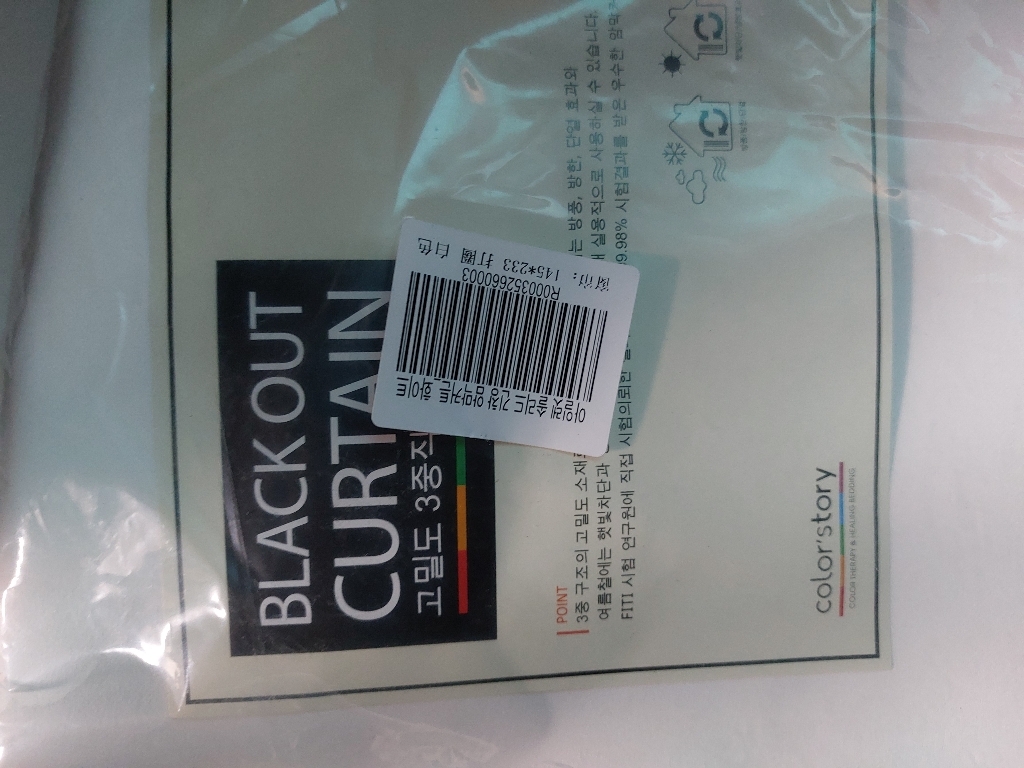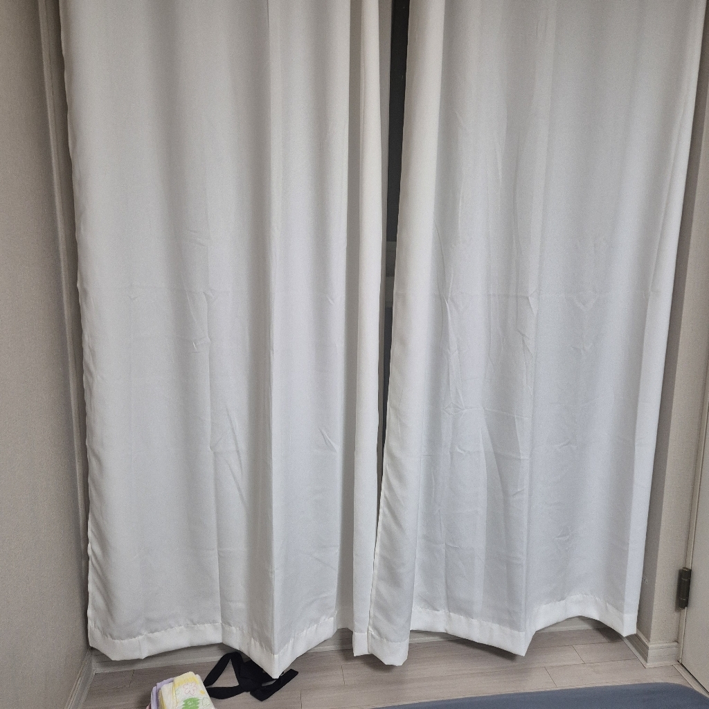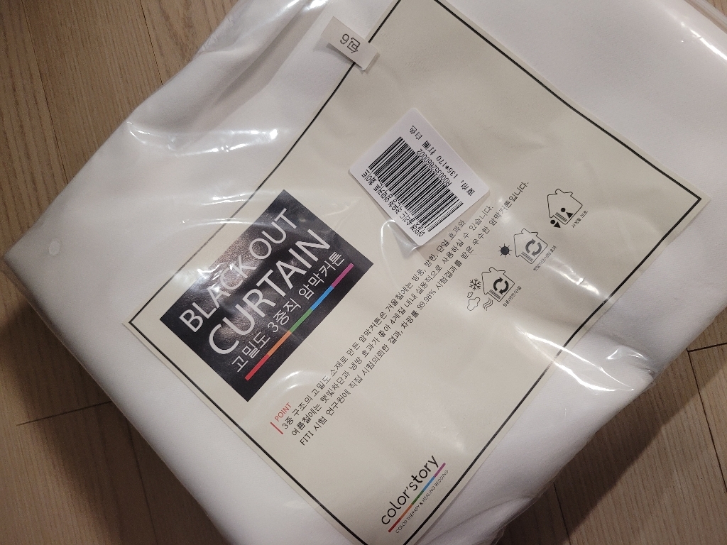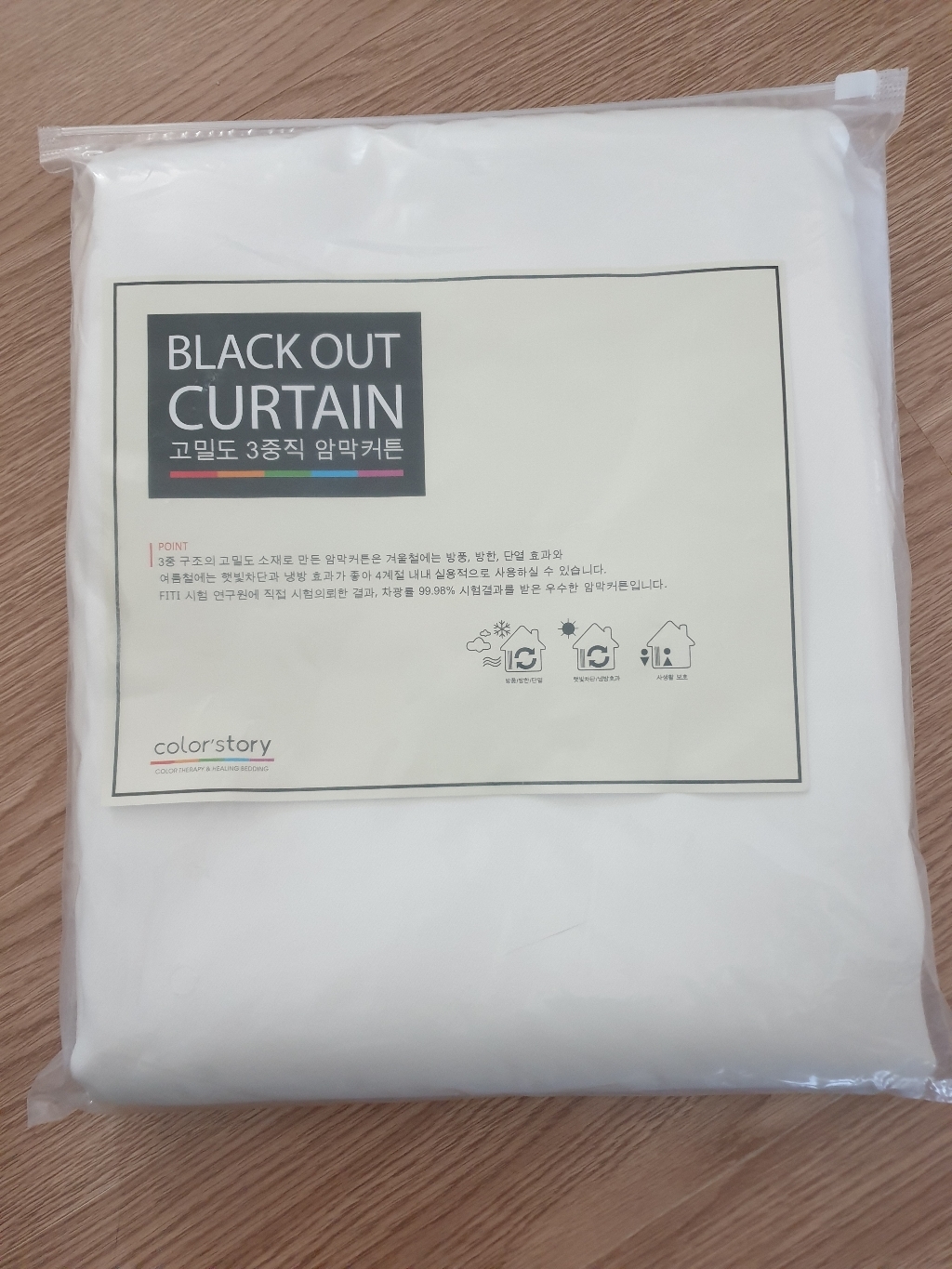 무게는 크게 무겁지 않아요. 집에 큰 저울이 없어 그냥 음식저울로 대충 달아봤는데 가볍가볍. 안방에 달아놨던 비싼 암막 커텐은 많이 무거웠어서 그런지 굉장히 가볍다는 생각을 했습니다.