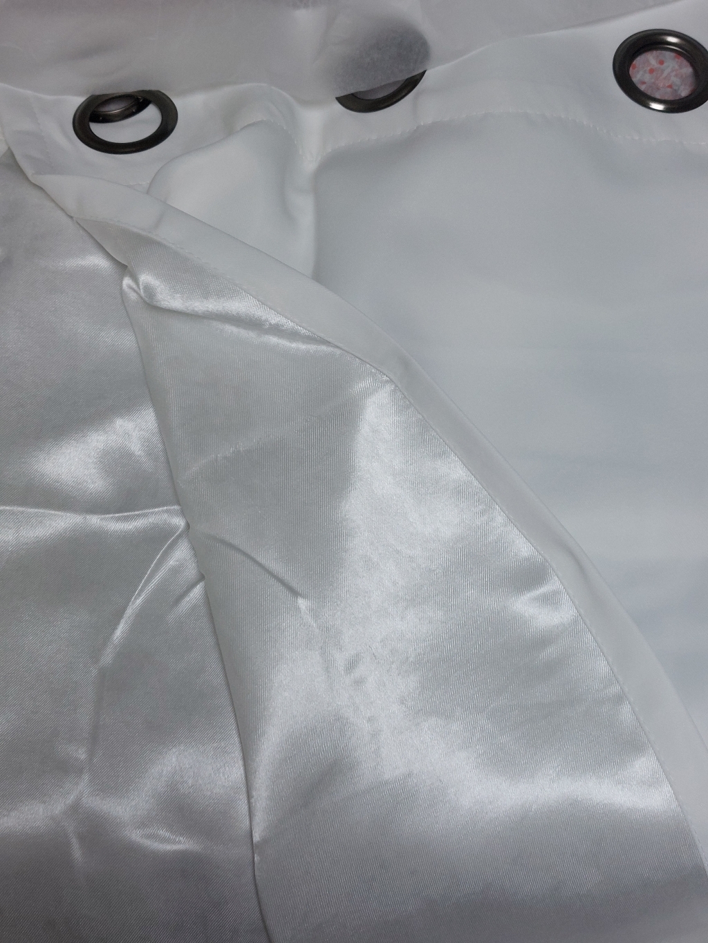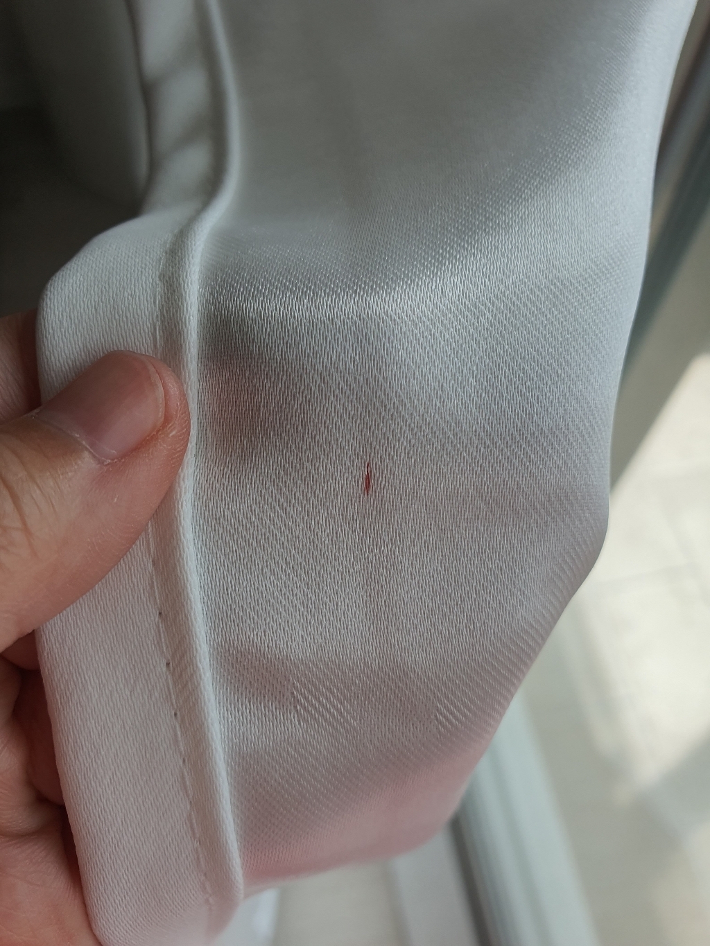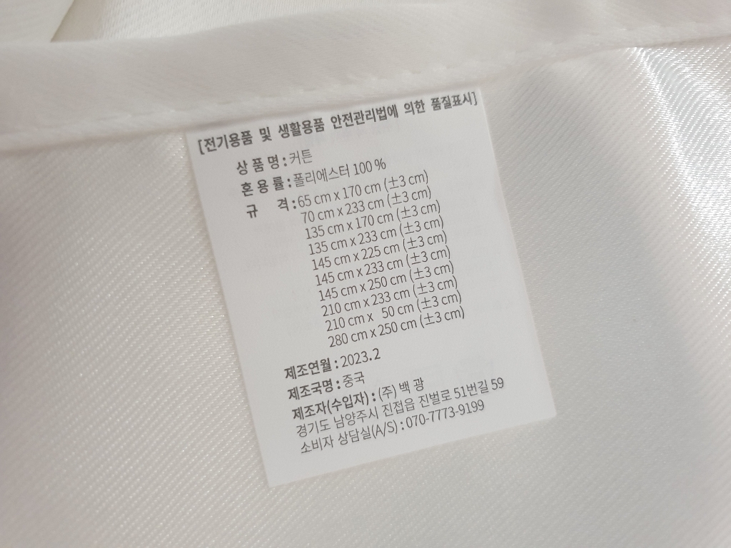 무게는 크게 무겁지 않아요. 집에 큰 저울이 없어 그냥 음식저울로 대충 달아봤는데 가볍가볍. 안방에 달아놨던 비싼 암막 커텐은 많이 무거웠어서 그런지 굉장히 가볍다는 생각을 했습니다.