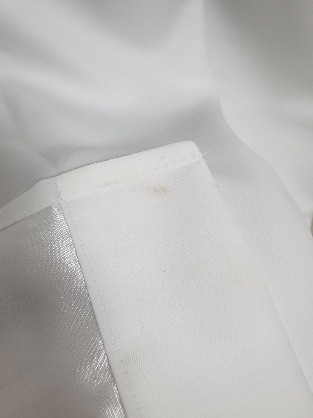 바느질은 꼼꼼하게 잘 되어있었고 아일렛 고리부분 녹슴이나 떨어짐도 없었고 전체적으로 불량없이 좋았습니다.
