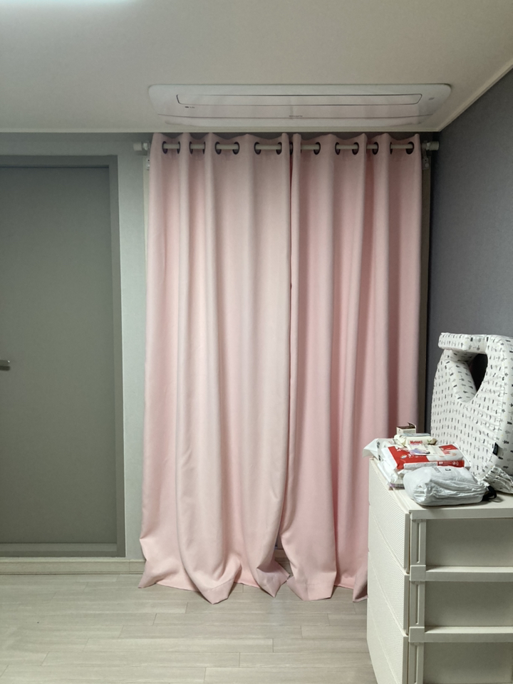 **더자리 아일렛형 솔리드 암막 커튼 (크림핑크컬러, 2장)**을 구매했어요.