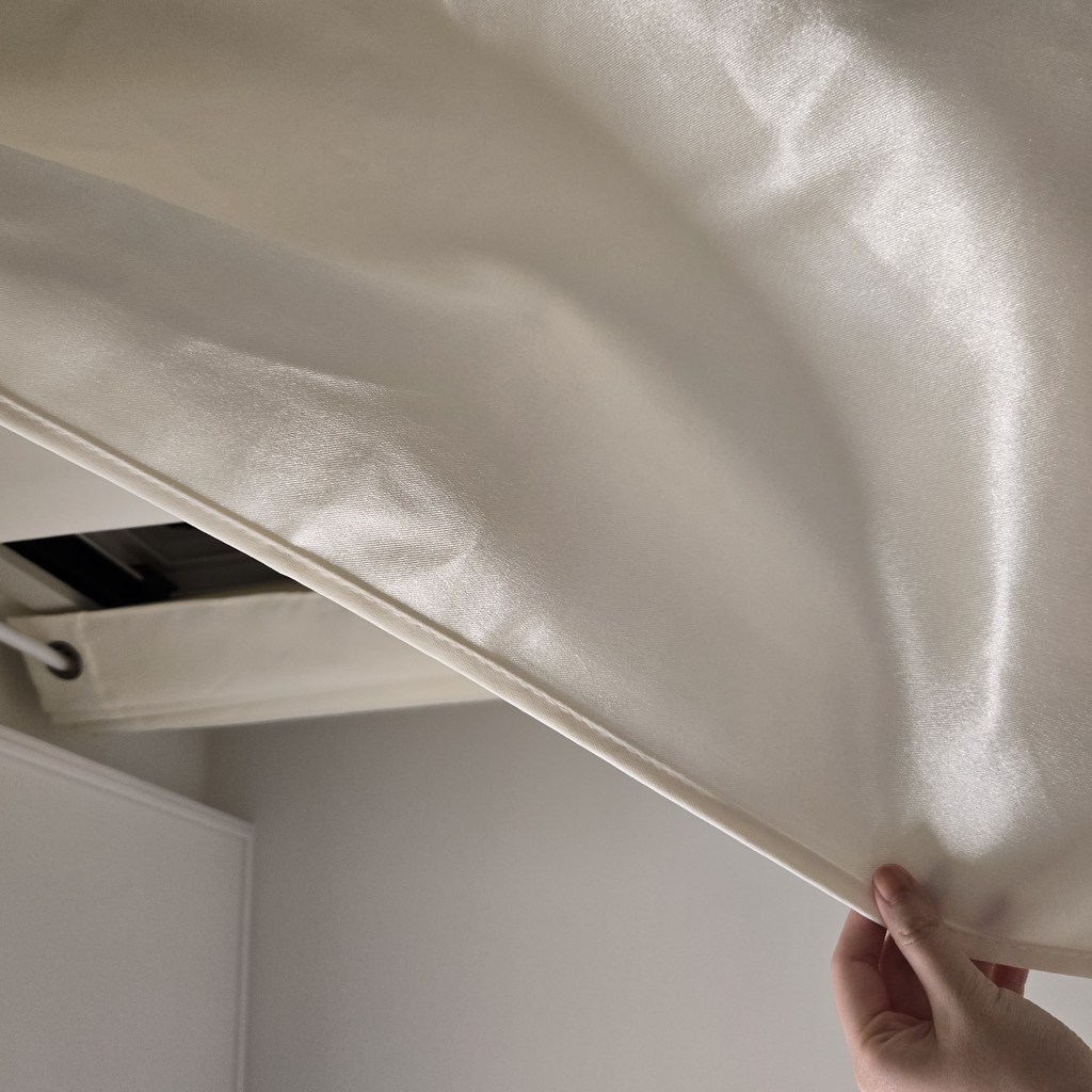 촘촘한 짜임 덕분에 암막 성능도 좋고, 세탁해도 원단 변형이 거의 없어요.