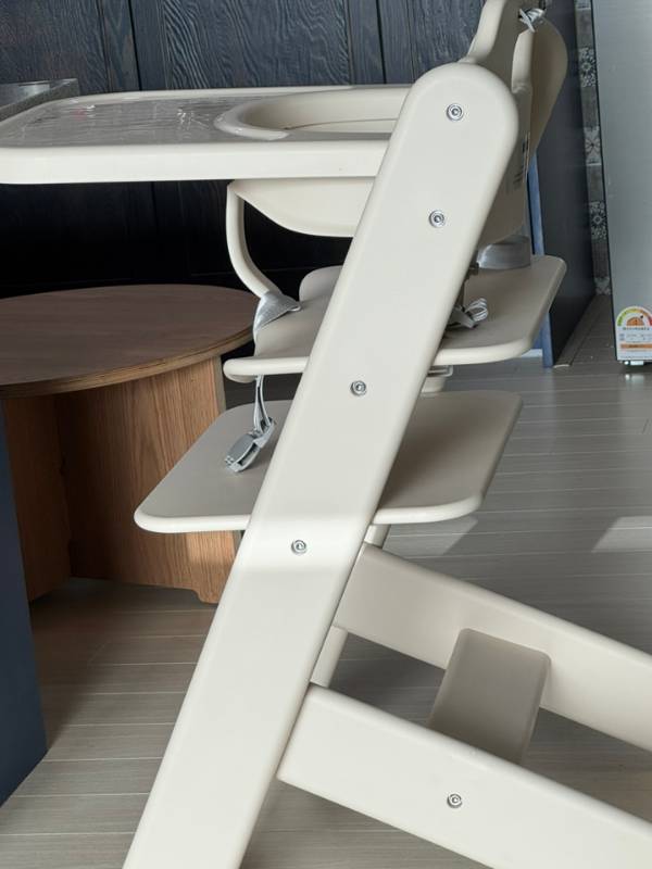 우선 의자가 전체적으로 탄탄하고 흔들림이 거의 없어요. 아기가 움직이거나 발을 차도 의자가 밀리거나 기울어지는 느낌이 없어서 안심이 됐습니다. 바닥과 닿는 부분도 안정적으로 설계되어 있어서 식사 중에도 불안하지 않았어요.