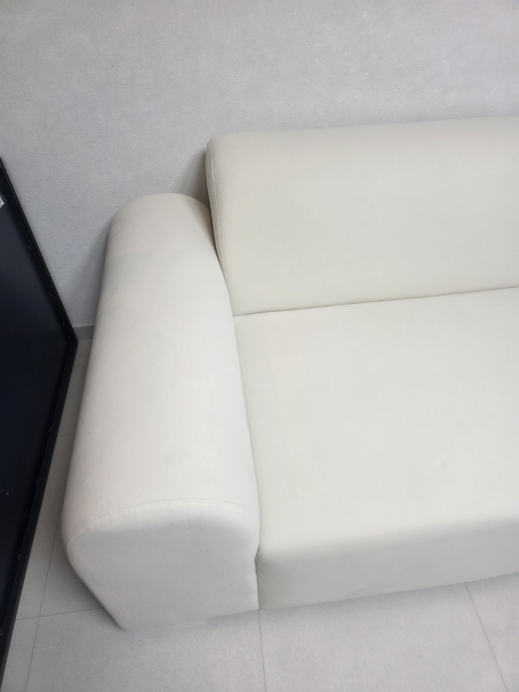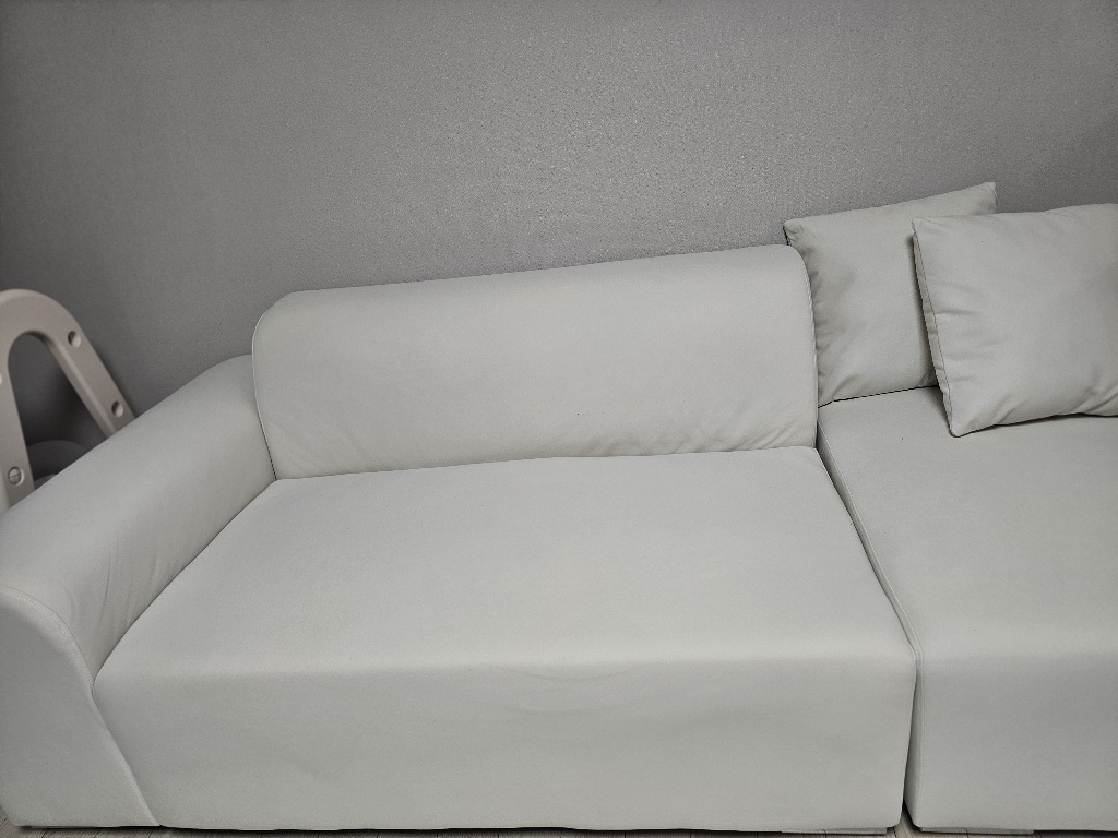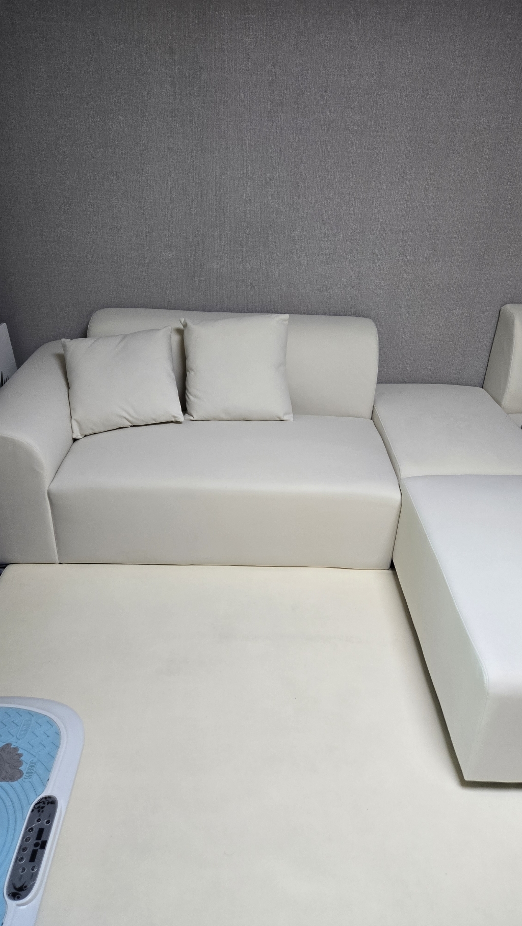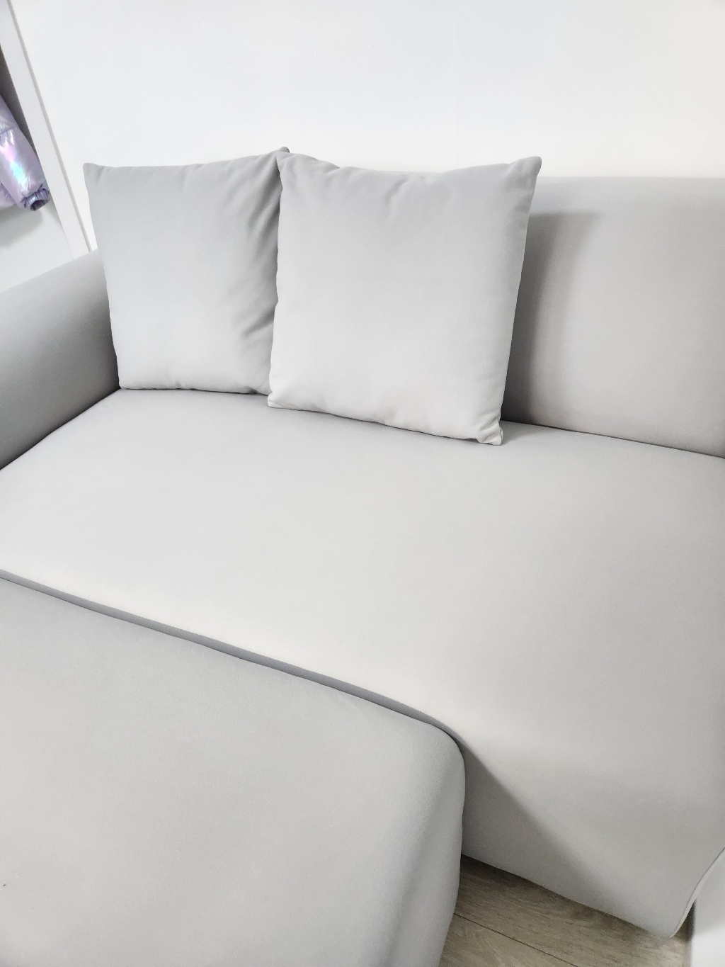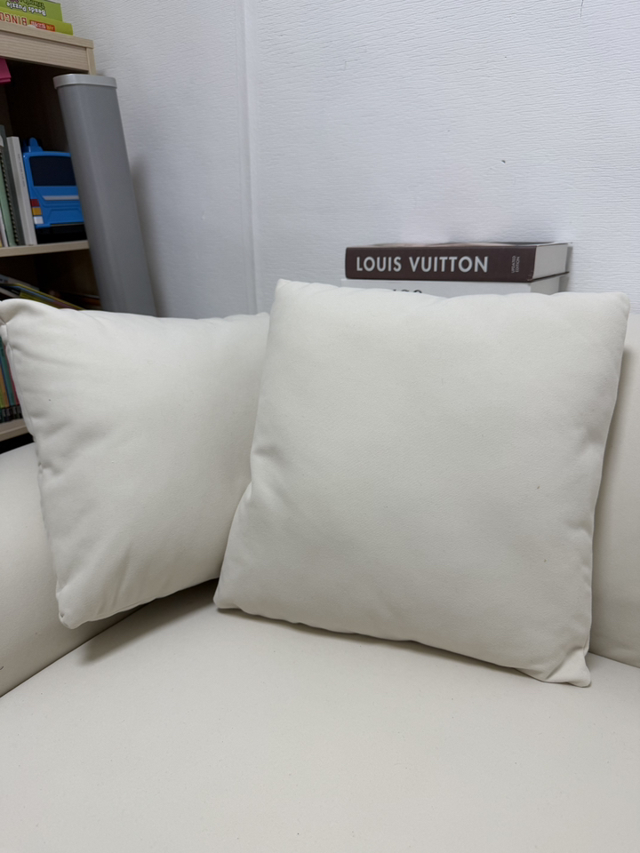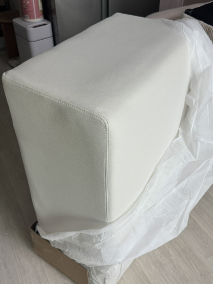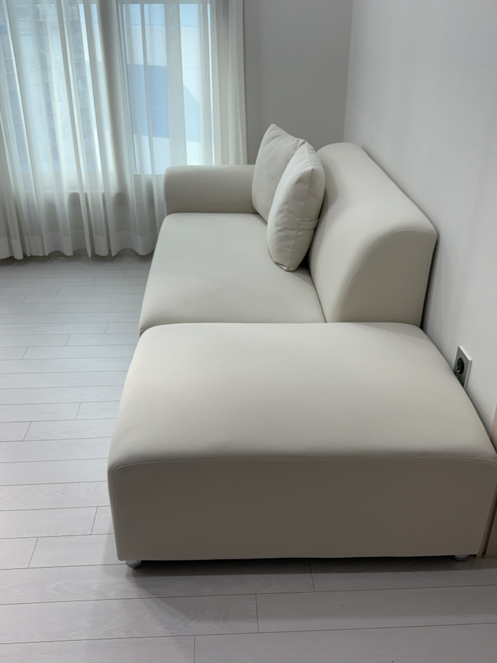 패브릭은 부들부들하고 촉감이 좋은 대신 오염이 조금 걱정되긴 했지만, 색감이 은은하고 고급스럽게 빠져 있어서 실제로 거실에 놓으면 굉장히 예뻐요. 공간을 환하게 밝혀주고, 인테리어 분위기를 깔끔하고 따뜻하게 만들어줘요. 사진보다 실물이 훨씬 예쁜 스타일입니다.