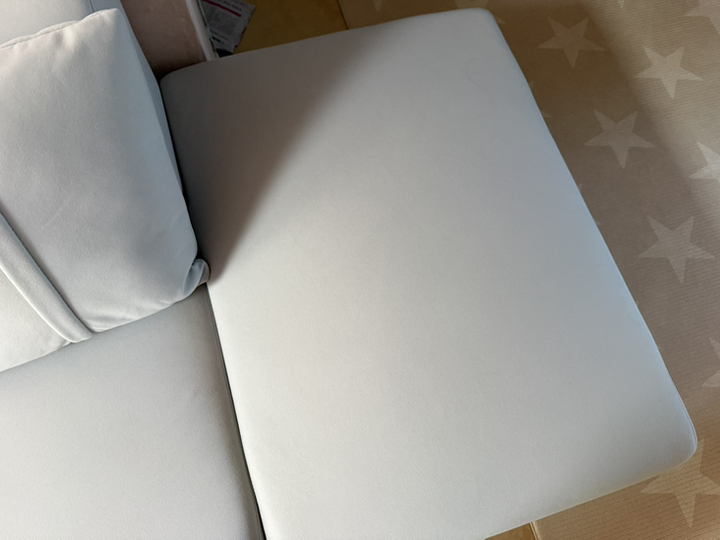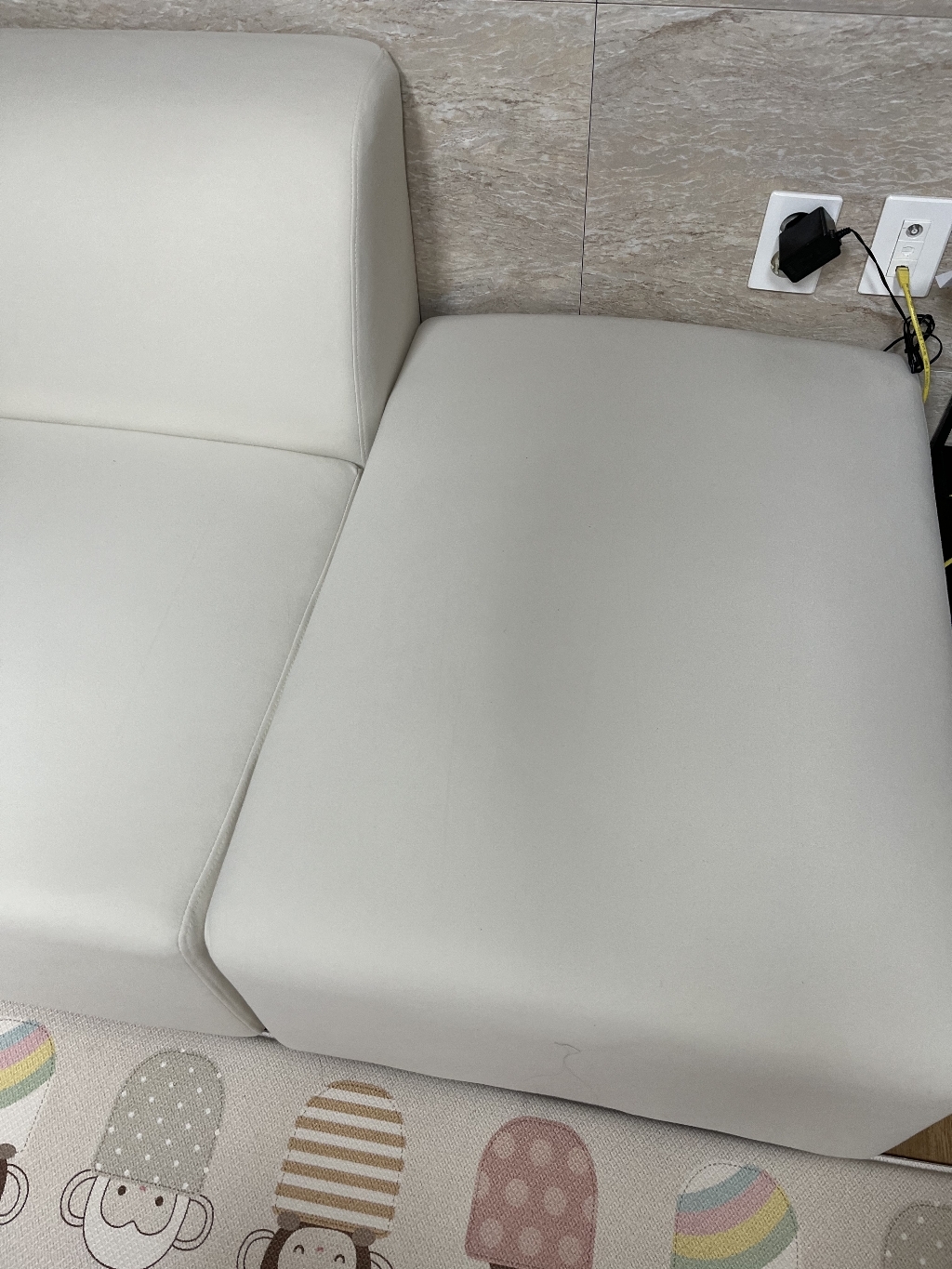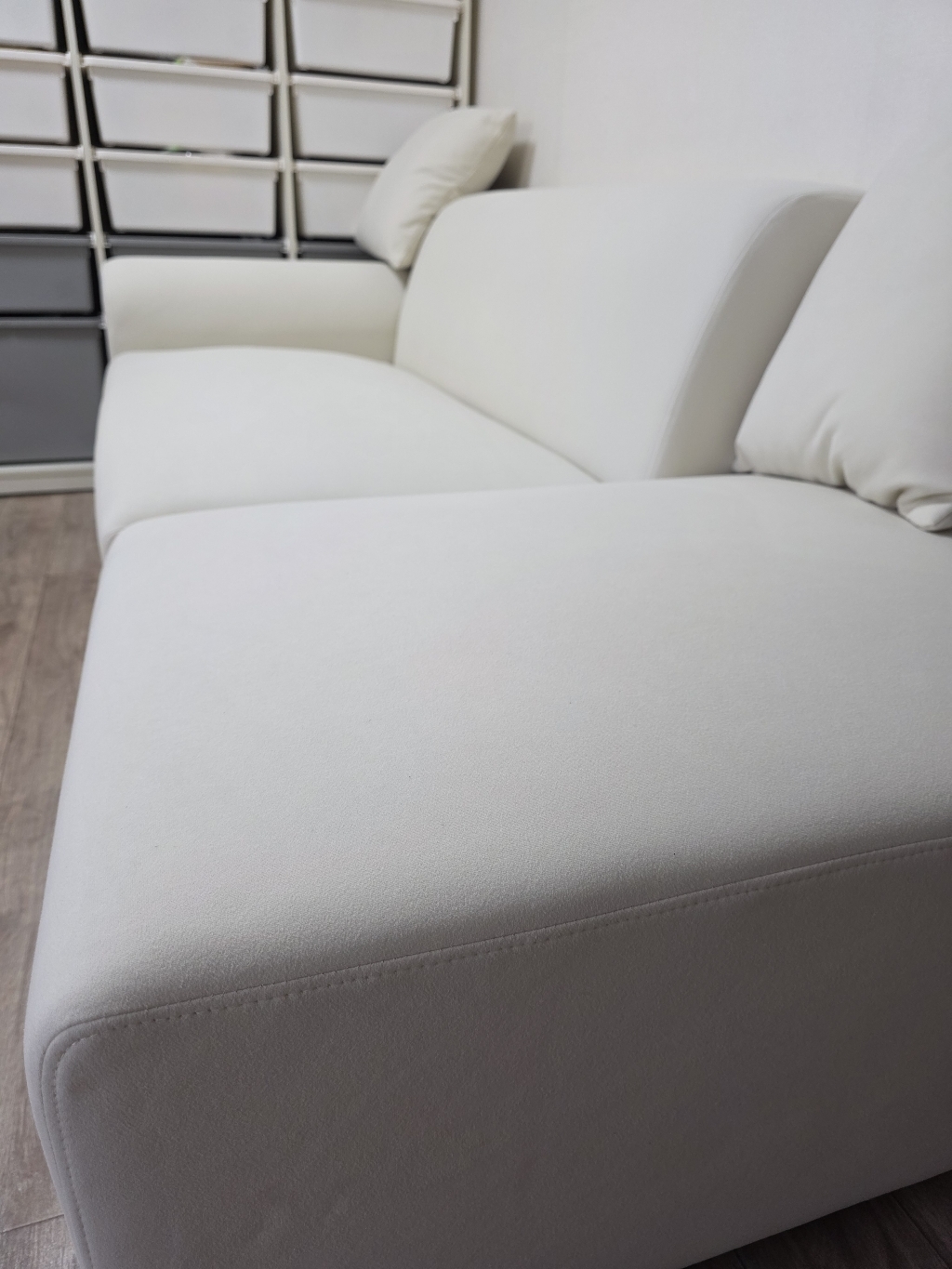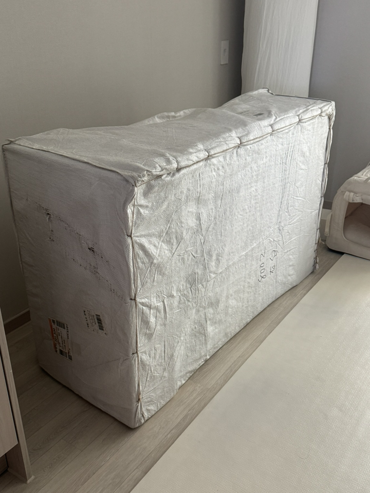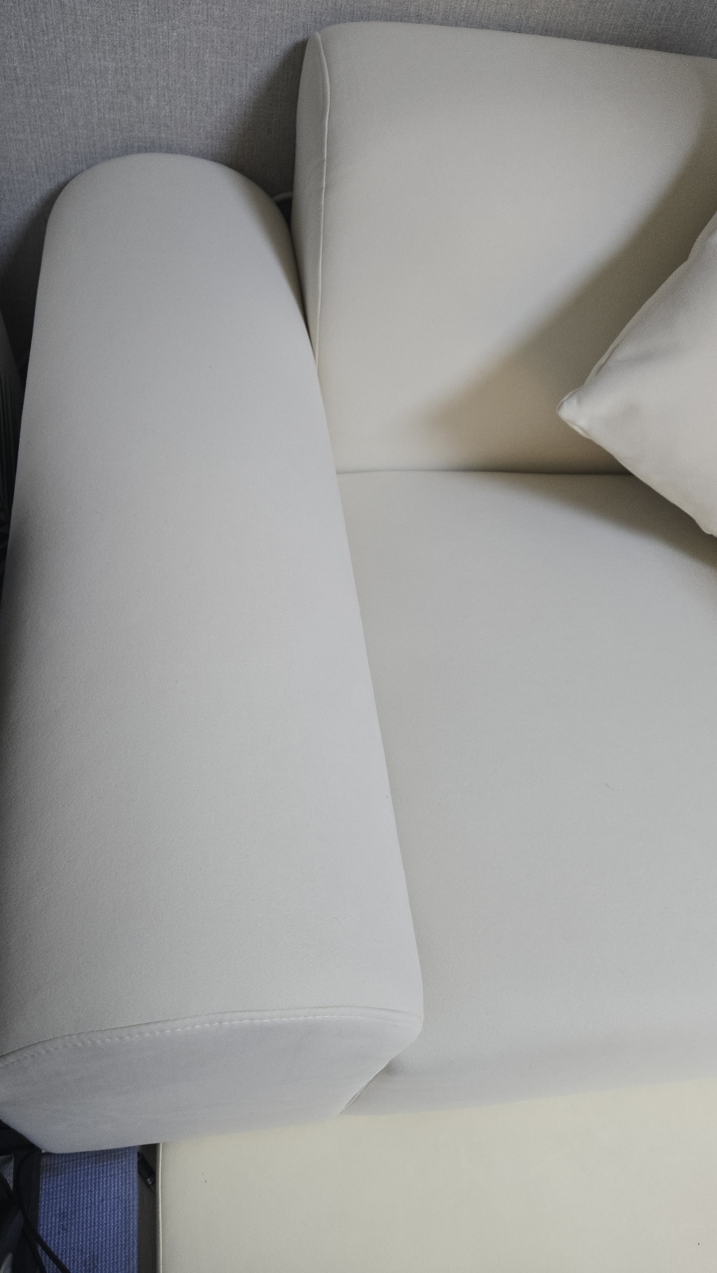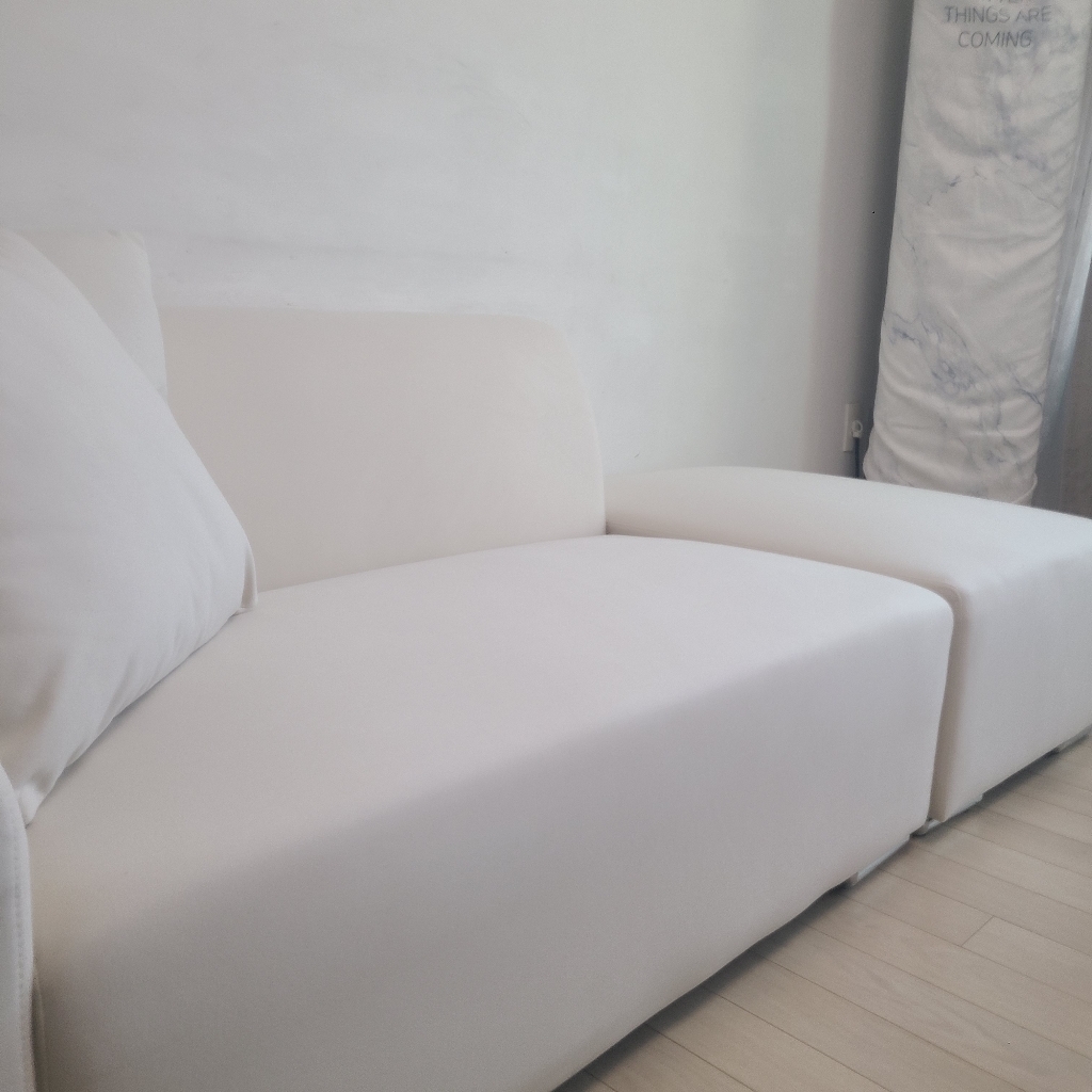 패브릭은 부들부들하고 촉감이 좋은 대신 오염이 조금 걱정되긴 했지만, 색감이 은은하고 고급스럽게 빠져 있어서 실제로 거실에 놓으면 굉장히 예뻐요. 공간을 환하게 밝혀주고, 인테리어 분위기를 깔끔하고 따뜻하게 만들어줘요. 사진보다 실물이 훨씬 예쁜 스타일입니다.