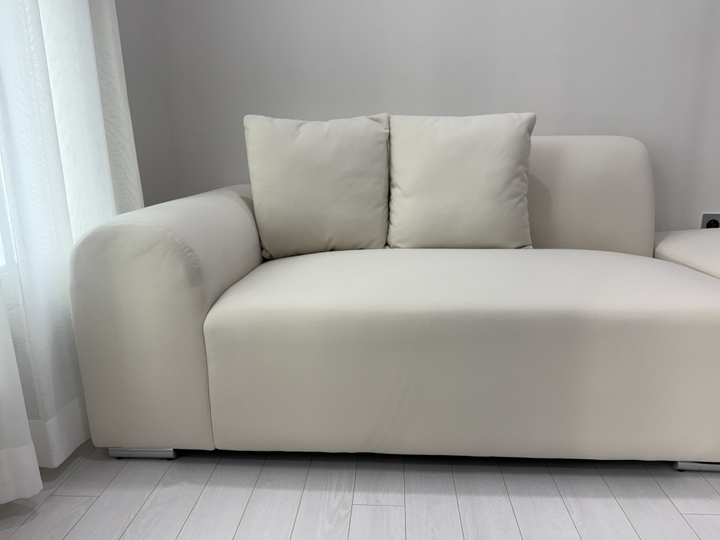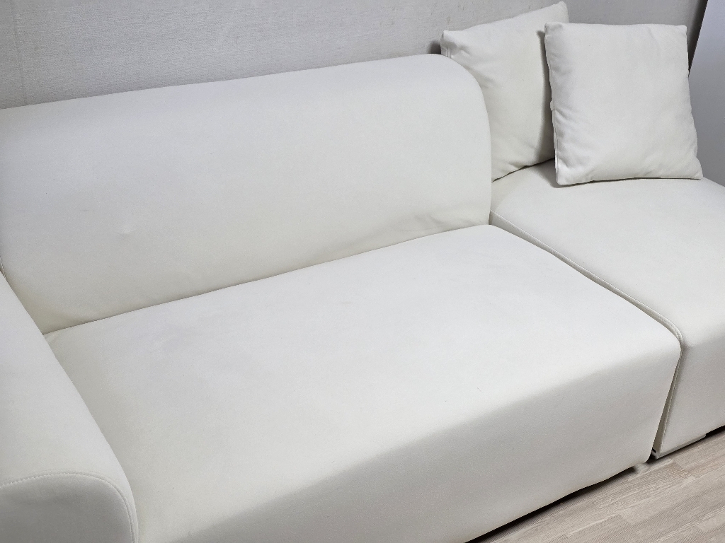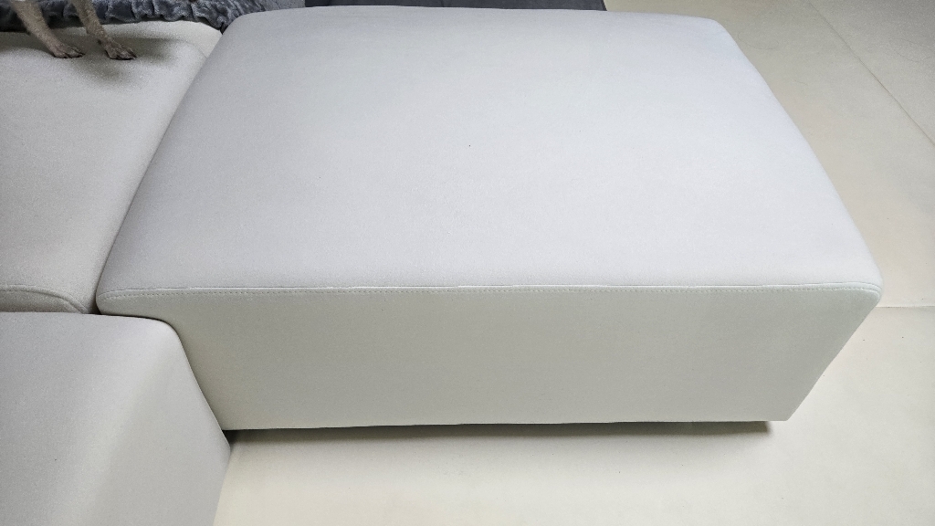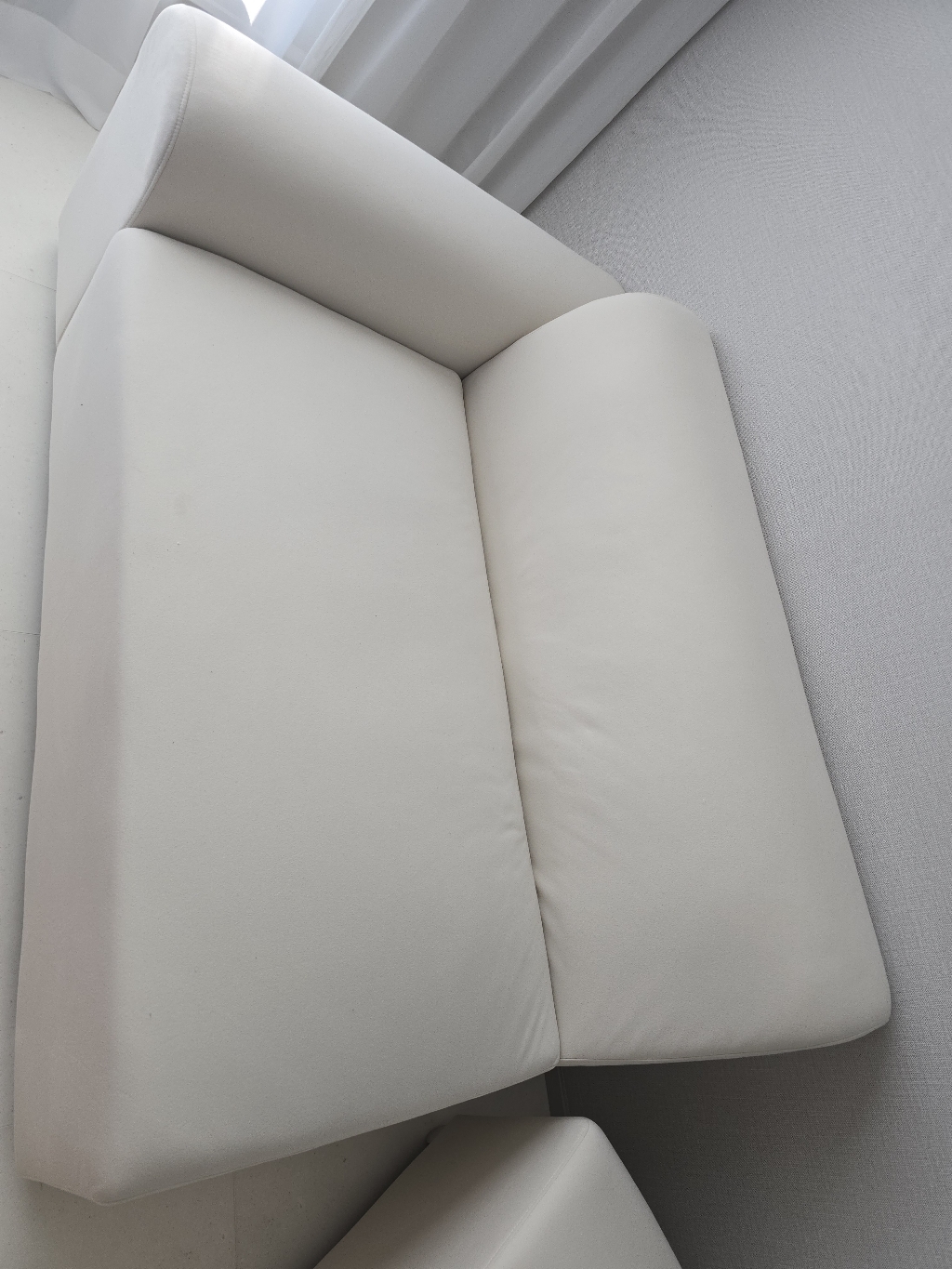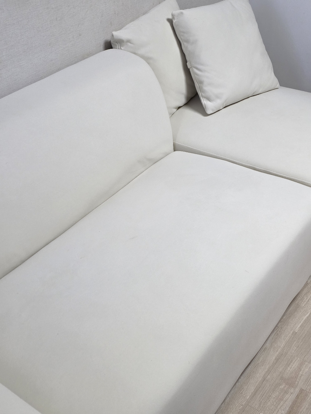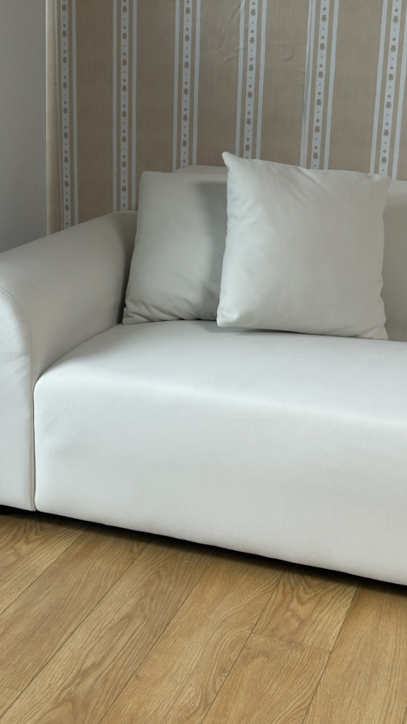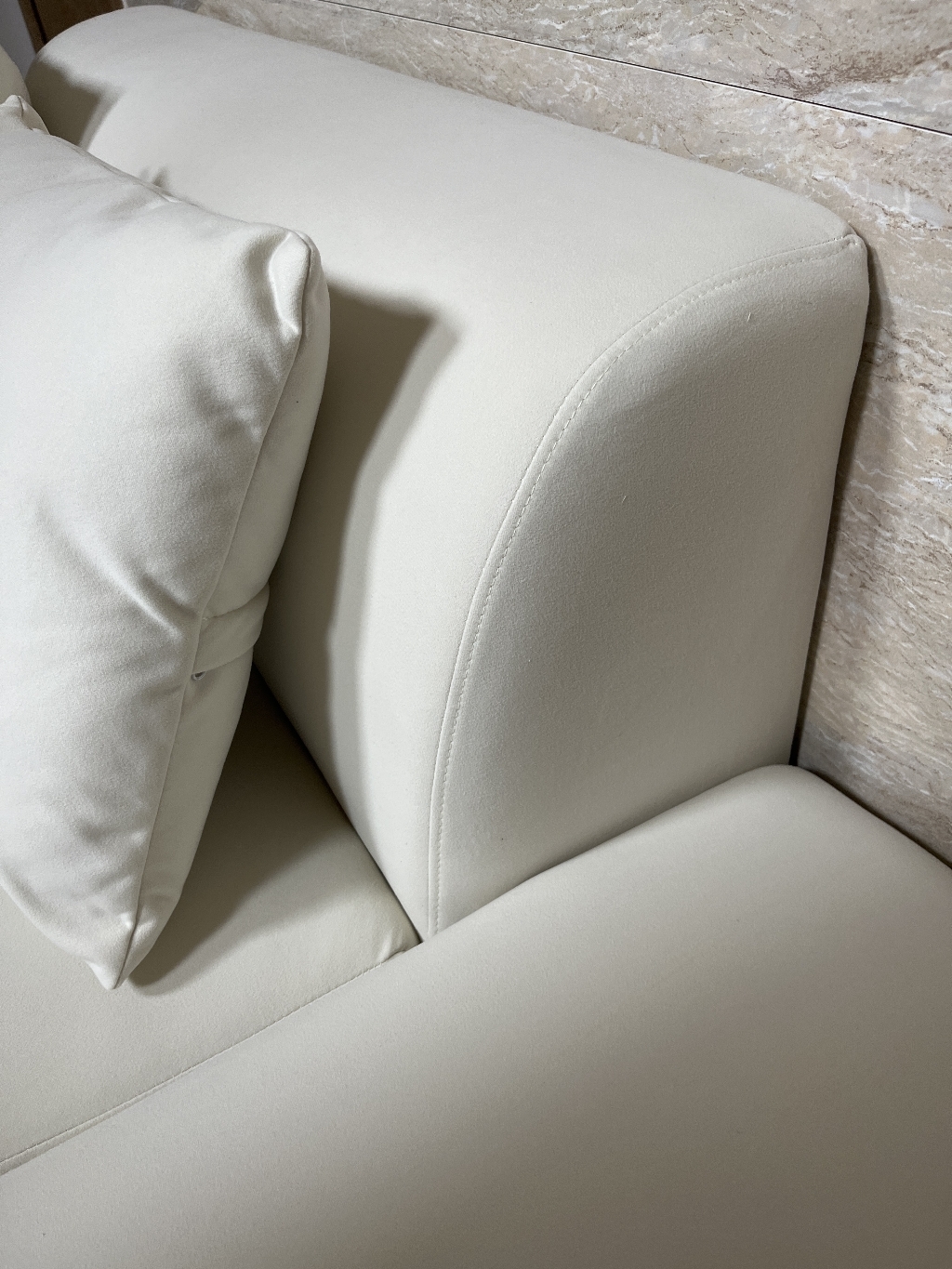패브릭은 부들부들하고 촉감이 좋은 대신 오염이 조금 걱정되긴 했지만, 색감이 은은하고 고급스럽게 빠져 있어서 실제로 거실에 놓으면 굉장히 예뻐요. 공간을 환하게 밝혀주고, 인테리어 분위기를 깔끔하고 따뜻하게 만들어줘요. 사진보다 실물이 훨씬 예쁜 스타일입니다.
