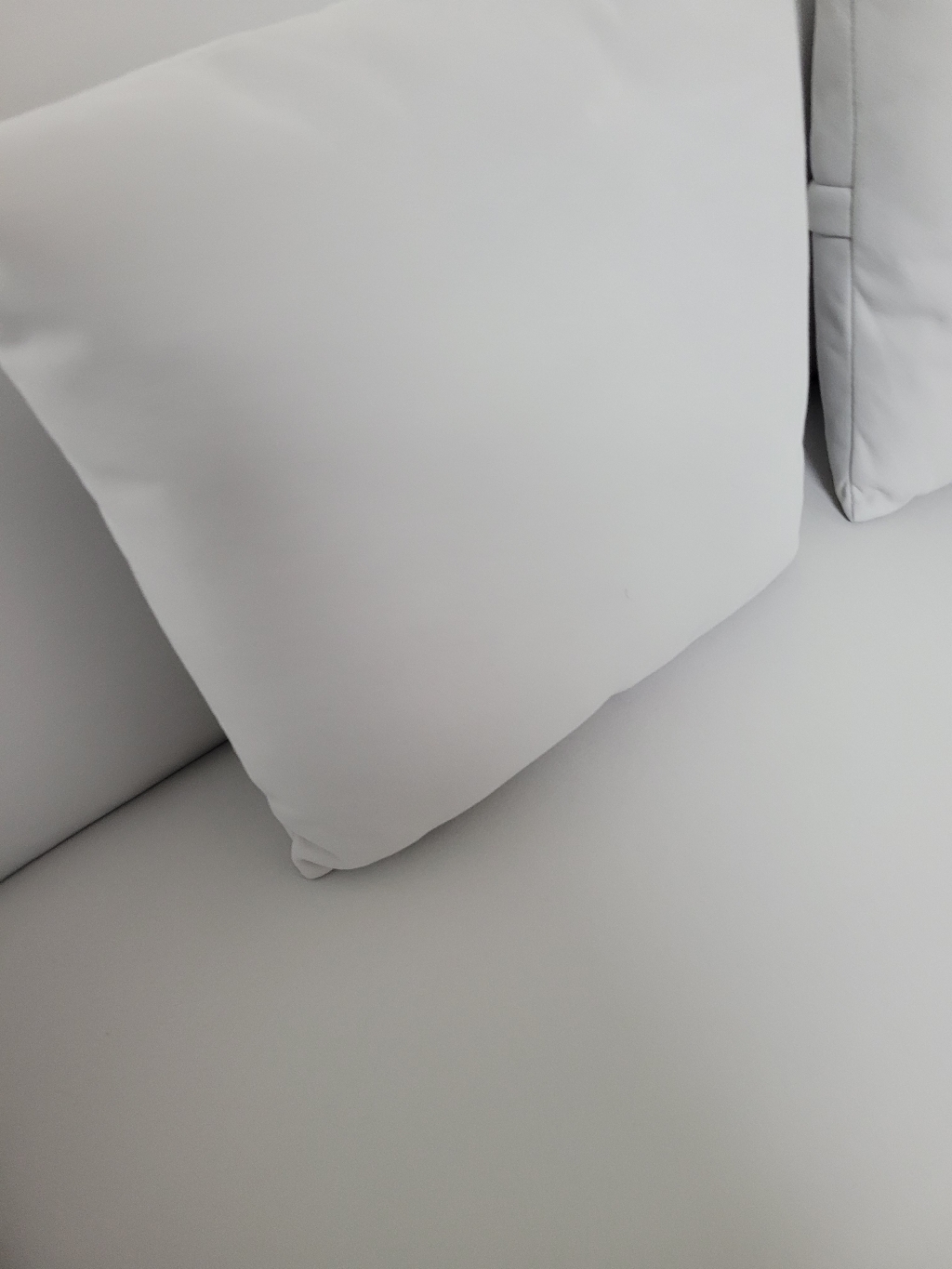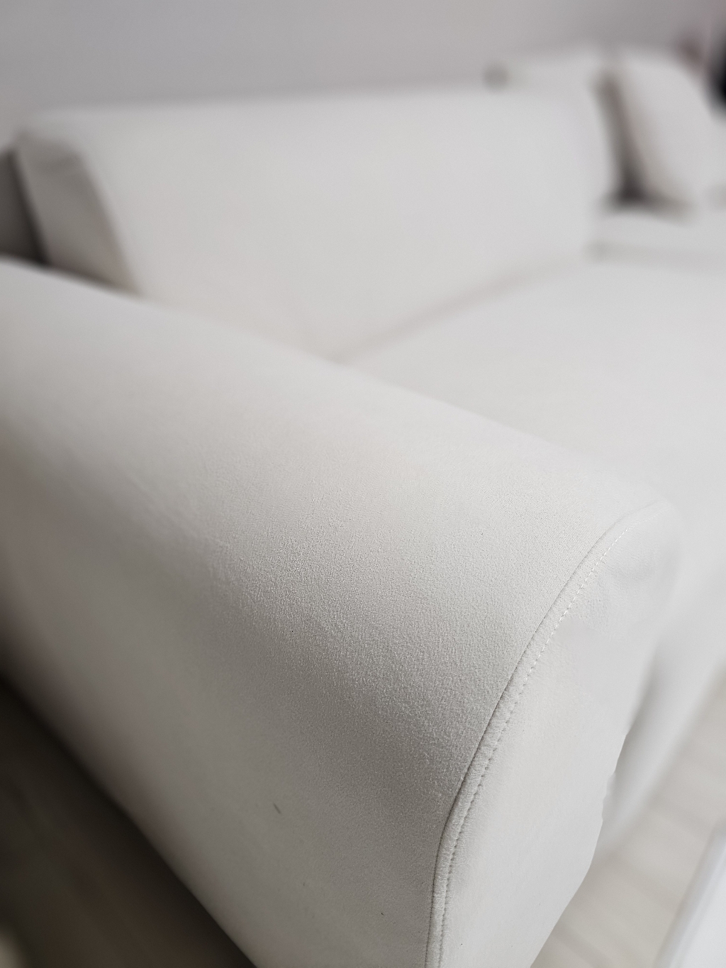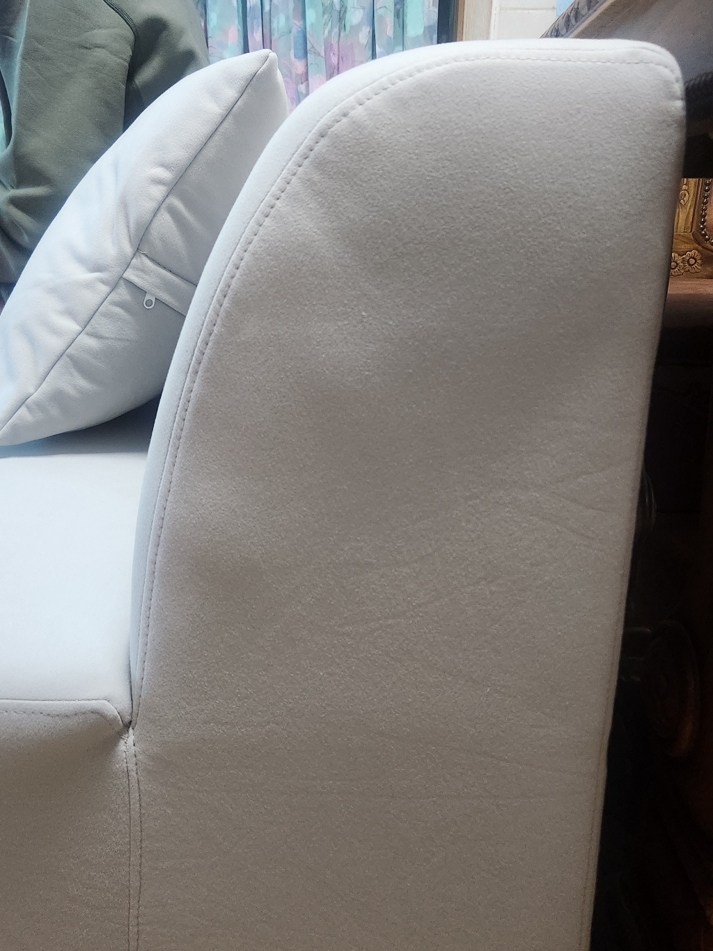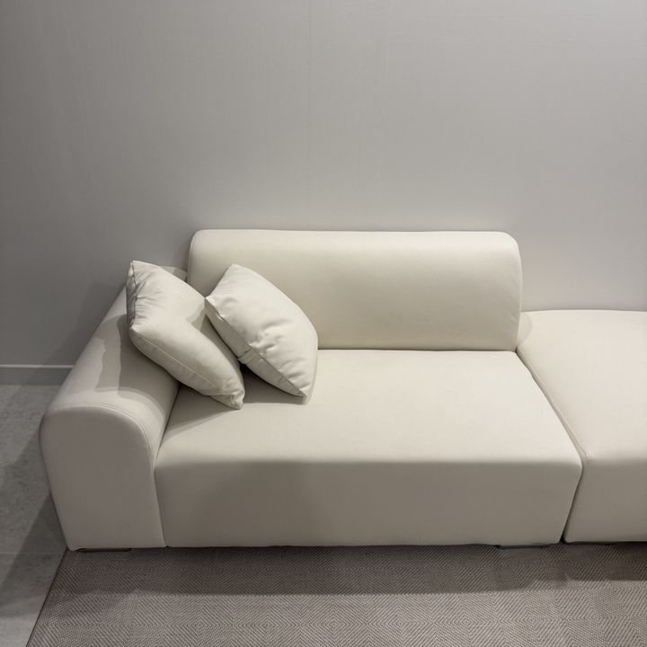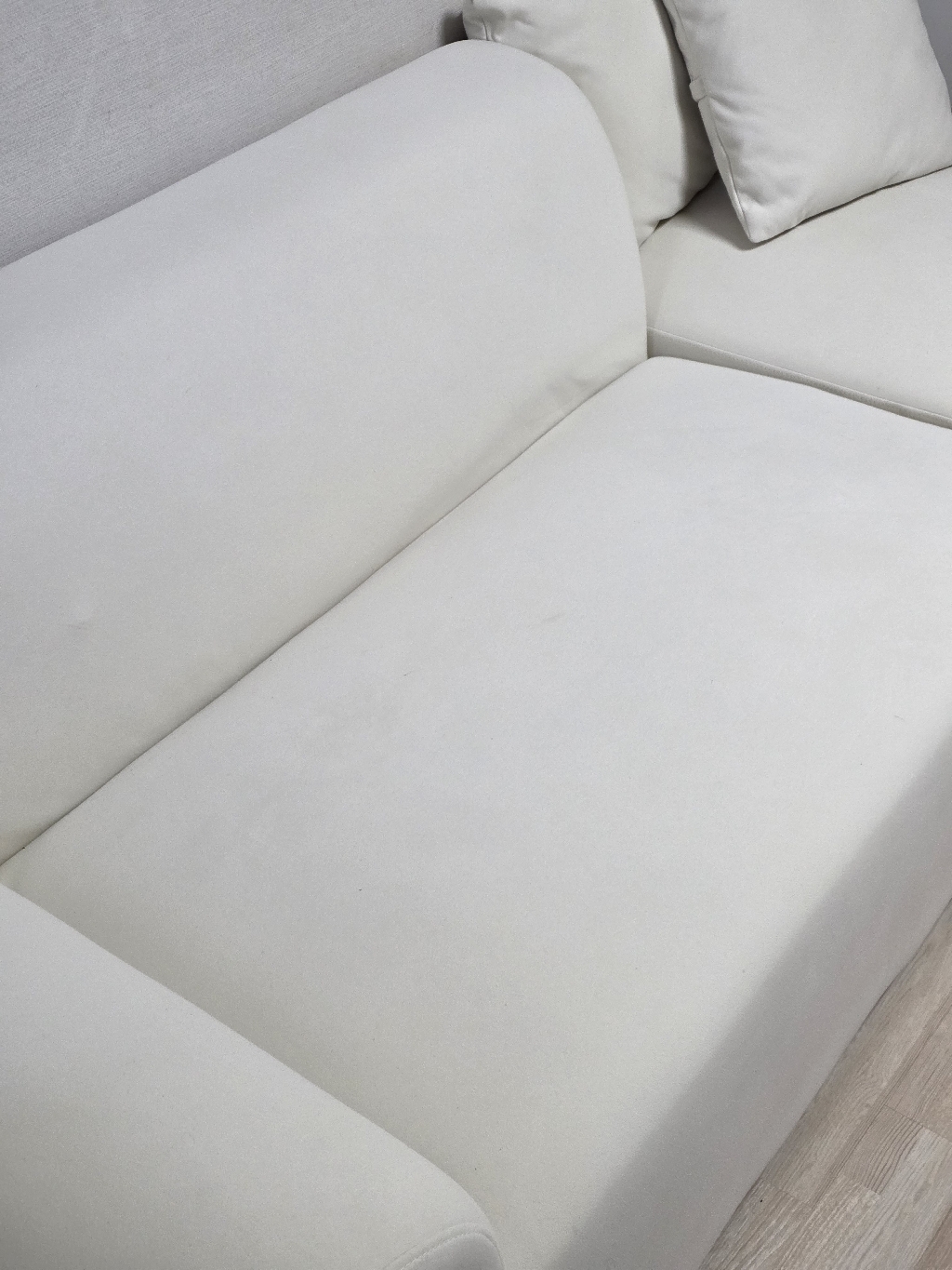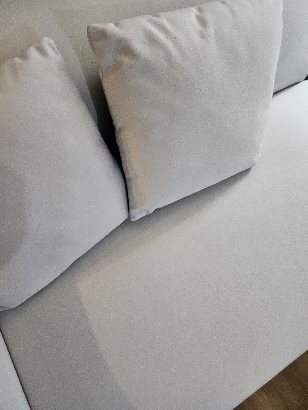 패브릭은 부들부들하고 촉감이 좋은 대신 오염이 조금 걱정되긴 했지만, 색감이 은은하고 고급스럽게 빠져 있어서 실제로 거실에 놓으면 굉장히 예뻐요. 공간을 환하게 밝혀주고, 인테리어 분위기를 깔끔하고 따뜻하게 만들어줘요. 사진보다 실물이 훨씬 예쁜 스타일입니다.