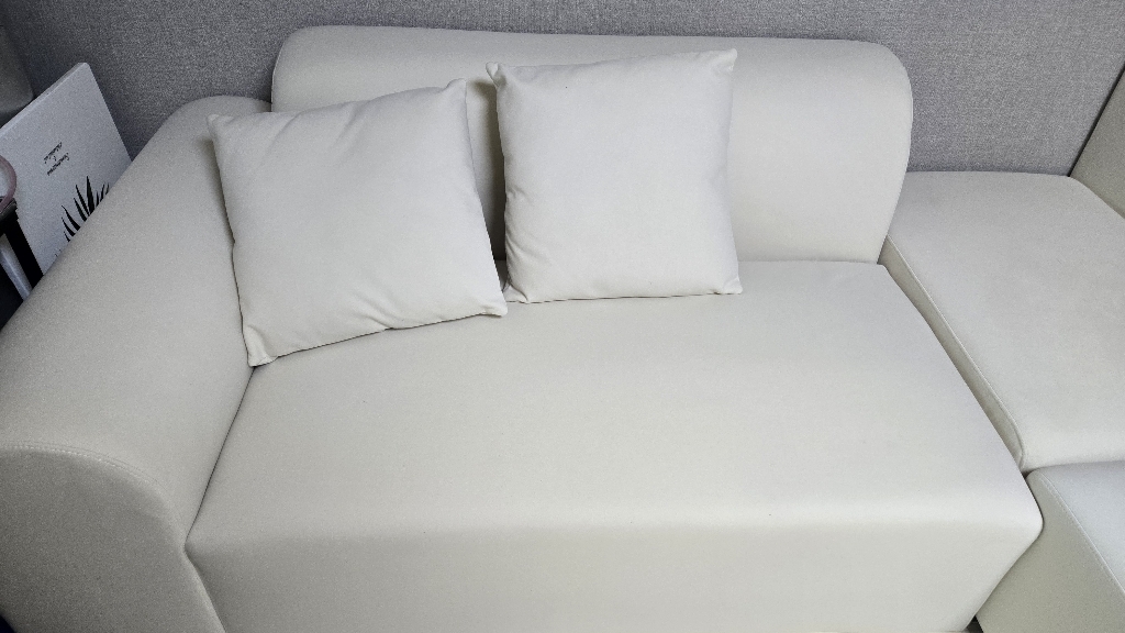 함께 구성된 쿠션 2개도 크기와 밀도가 괜찮아서 허리 받침이나 팔걸이용으로 활용하기 좋아요. 디자인도 소파 본체와 잘 어울려 통일감이 느껴집니다. 무엇보다 냄새가 거의 없어서 설치 직후에도 불쾌감 없이 바로 사용할 수 있었어요.