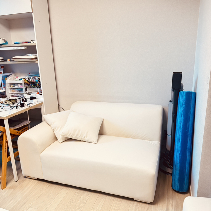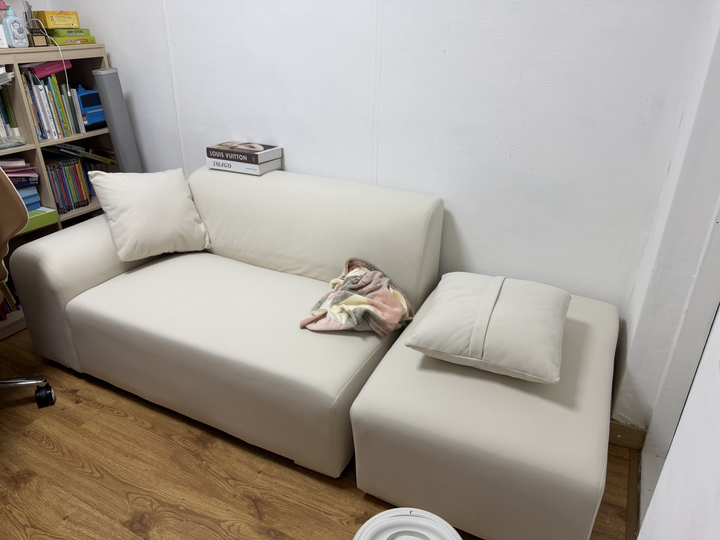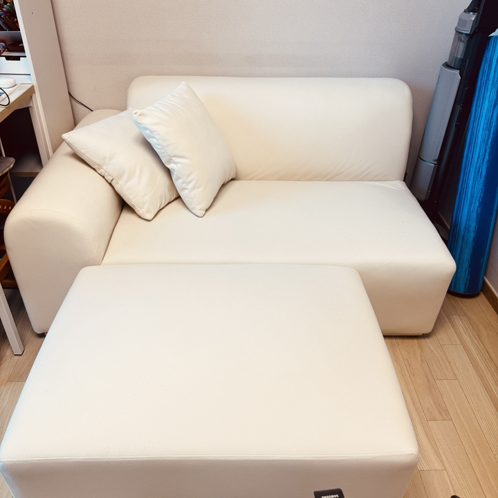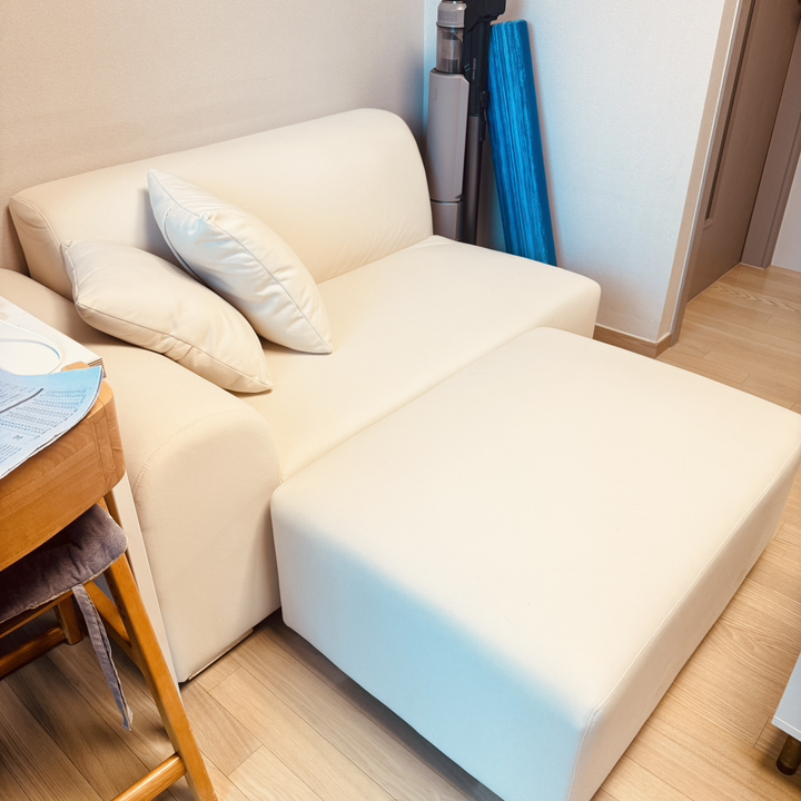 스툴이 포함돼 있는 점도 꽤 마음에 들었어요. 다리 올려두고 쉴 때 정말 편하고, 손님 오면 보조 의자로도 쓸 수 있어요. 평소에는 소파 앞에 두고 카우치처럼 쓰다가, 필요할 때 옮기면 되니까 활용도가 높더라고요. 가볍게 이동 가능해서 청소할 때도 크게 불편하지 않았어요.