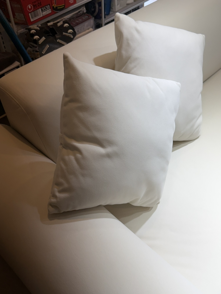 함께 제공되는 쿠션 2P는 단순한 구성품이 아니라, 전체 디자인을 완성시켜주는 포인트 같아요. 쿠션 하나만 살짝 바꿔 배치해도 분위기가 달라져서 스타일링하기에도 좋았습니다.