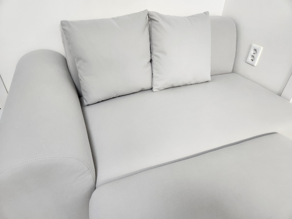2인용이지만 우형 구조라 생각보다 넉넉해요. 성인 두 명이 앉아도 답답하지 않고, 한 명이 누워서 사용하기도 충분했어요. 거실이 아주 넓지 않아도 공간 차지 과하지 않아서 아파트 거실이나 신혼집에 잘 맞을 사이즈입니다.