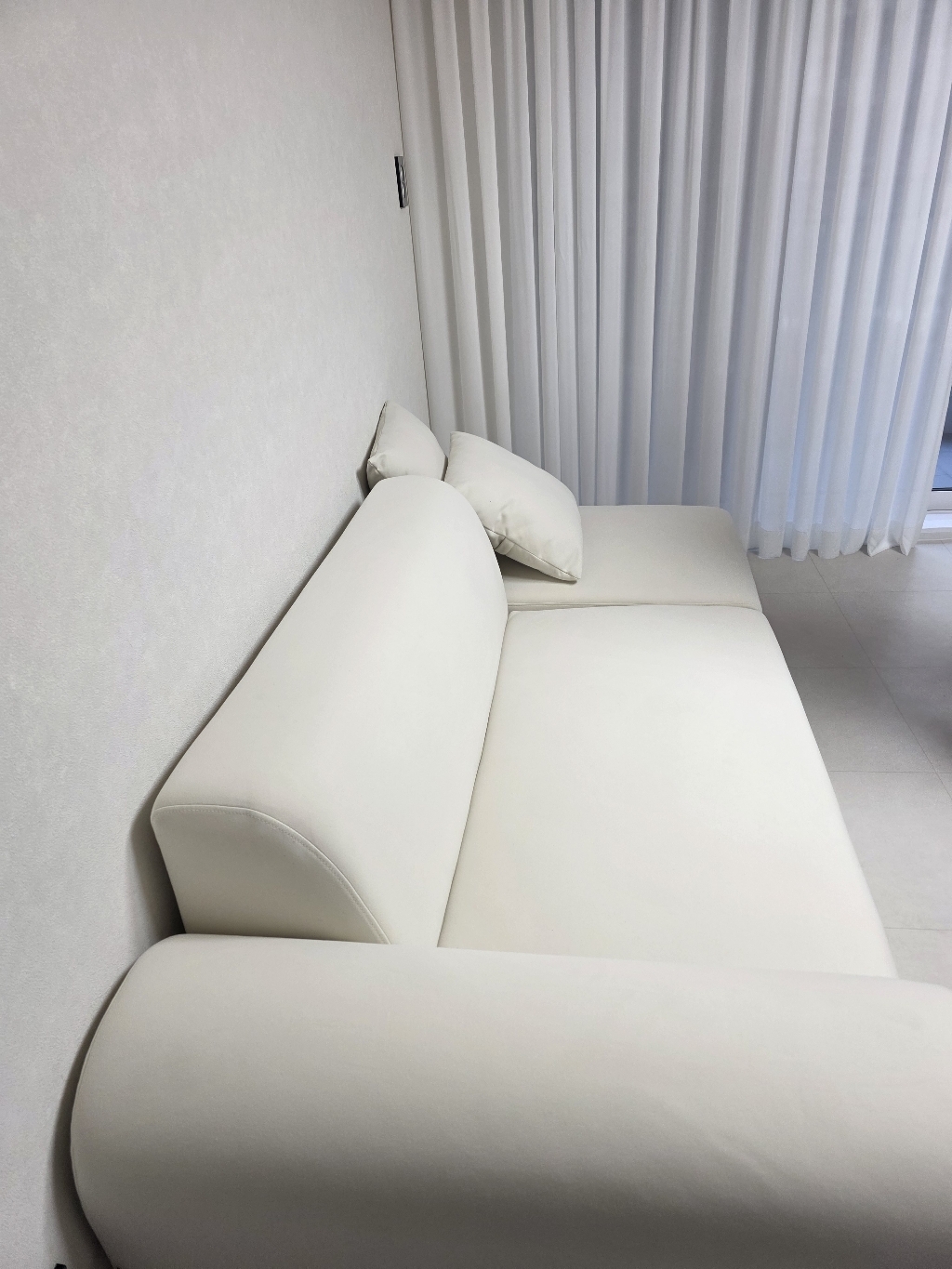 설치는 방문 설치라 따로 신경 쓸 게 없었고, 마감도 전반적으로 깔끔했어요. 박음질이나 이음선도 정리 잘 돼 있고, 가격 대비 마감 퀄리티가 괜찮다는 인상을 받았어요. 전체적으로 디자인, 색감, 착석감, 활용도까지 균형이 잘 잡힌 소파라서 깔끔한 거실을 원하시는 분들이나 아이 있는 집에도 무난하게 잘 어울릴 것 같아요.