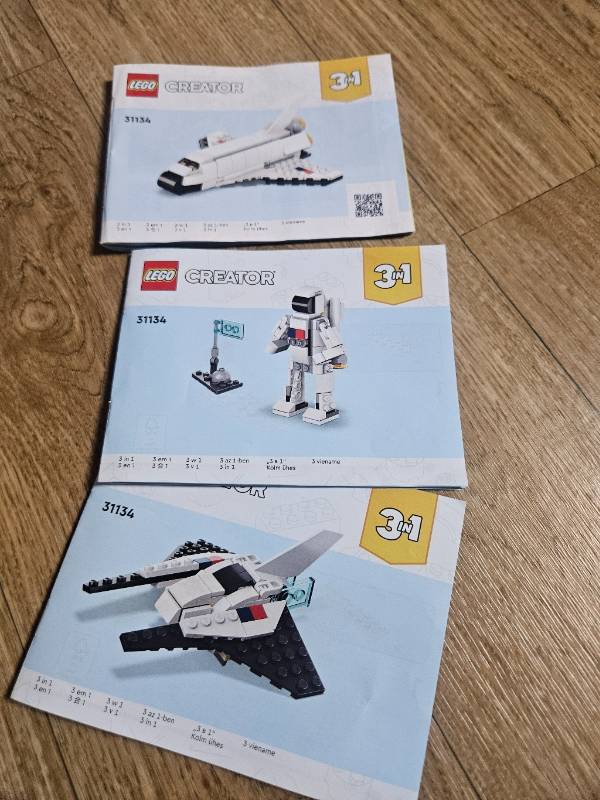 레고 31134 크리에이터 우주왕복선은 변신가능한 우주 왕복선과 함께하는 우주 액션 모험입니다. 자유 관절 우주비행사 또는 우주선으로 변신 가능한데 한가지 단점은 세가지 모델이 함께 있어서 아이가 다 조립하고 가지고 노는데 한가지 모델로만 가지고 놀 수 있다는,,, 그런 단점이 있습니다. 모르고 산건 아니지만 막상 이렇게 되니 조립만 하지 아이가 잘 가지고 놀지는 않아요~ 그래도 이 정도의 가격에 이 정도의 퀄리티면 만족합니다.