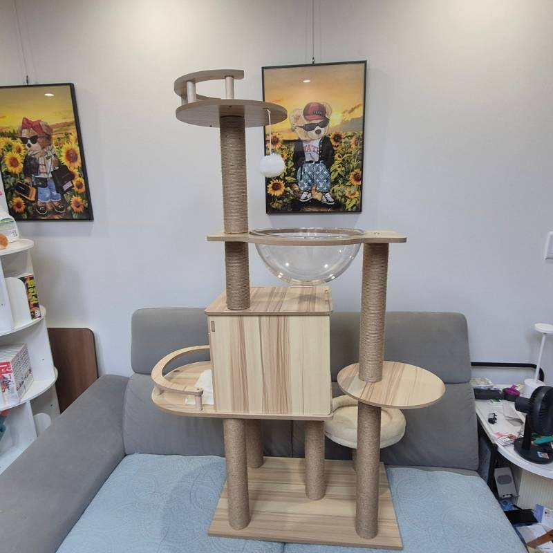 고양이 두 마리 키우는데 기존 캣타워가 너무 작아서 싸움만 나길래 큰 걸로 바꿔줌ㅋㅋ 목제라서 깔끔하고 인테리어에도 잘 어울림. 투명볼 해먹부터 숨숨집, 발판, 전망대까지 고양이들이 진짜 하루 종일 여기서만 놀고 잠. 흔들림 없어서 안정감도 만족스러움.
