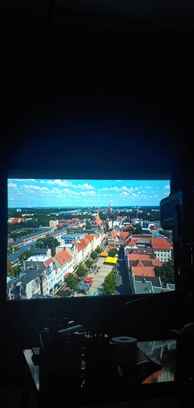 화면에 그냥 벽에 쏘는 것보다 훨씬 선명하고 좋습니다.