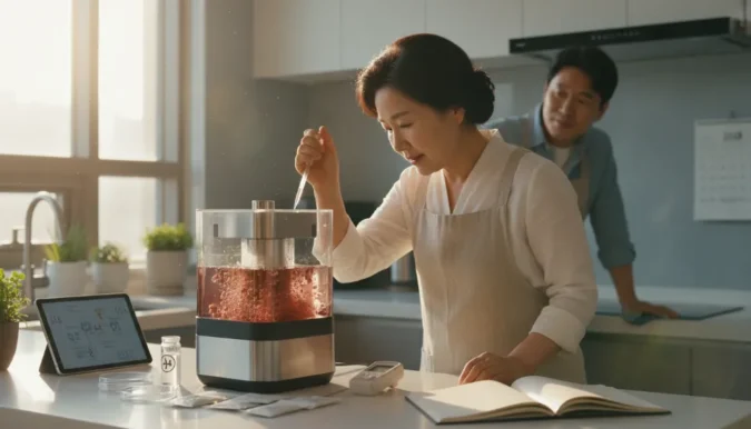 이미 분해력이 떨어졌다고 느껴질 때, 바로 교체하지 말고 이 방법을 먼저 시도해보세요. 첫 번째는 24시간 단식 요법입니다. 미생물도 과식을 하면 탈이 납니다. 음식물 투입을 하루 이틀 완전히 중단하고, ‘제습’ 버튼을 눌러 내부 습기를 날려주세요. 질퍽하던 배양액이 고슬고슬해지면 미생물 사이로 산소가 공급되어 다시 활력을 찾습니다. 이때 설탕 한 스푼과 물 한 컵을 섞어 넣어주면 미생물의 먹이가 되어 폭발적인 증식을 돕습니다.