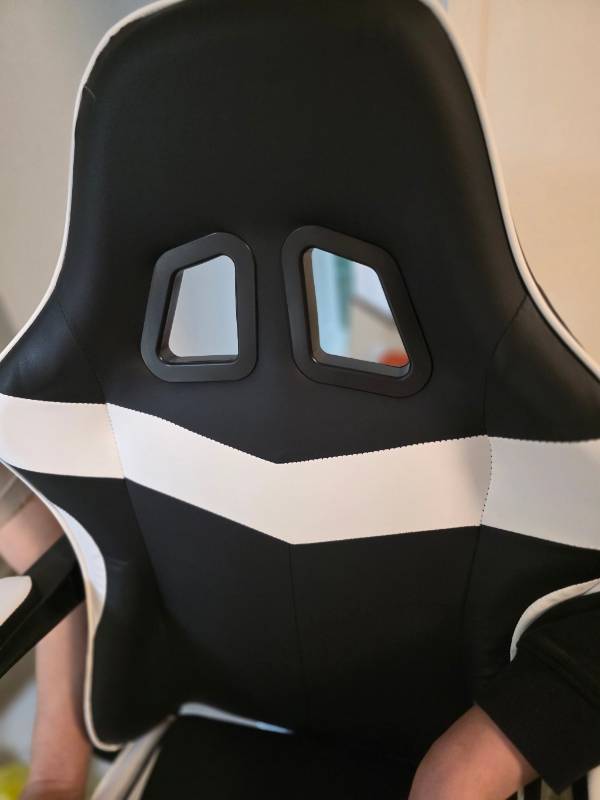 외관 디자인은 전형적인 게이밍 의자 스타일로, 블랙과 화이트의 대비가 강해 방 분위기를 확 살려줍니다. 실제로 책상 앞에 두면 마치 게임방 같은 몰입감 있는 환경이 완성됩니다. 인테리어 효과도 생각보다 상당합니다.