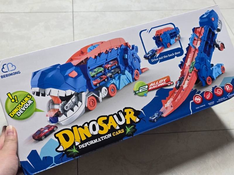 아이들이 정말 좋아하는 장난감입니다! 공룡 모양 캐리어가 크고 튼튼해서 보기만 해도 눈이 반짝여요. 입을 열어서 자동차를 “우걱” 삼키는 기능이 있어서 아이들이 반복해서 놀기 너무 좋아합니다. 미니카도 귀엽고 잘 굴러가며, 캐리어 안에 쏙쏙 정리할 수 있어 정리 교육용으로도 좋아요.