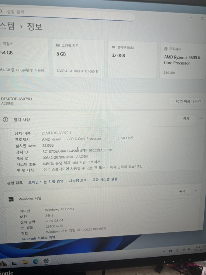 윈도우 11 정품이 설치되어 있어 초기 설정이 간편한 점도 좋았습니다. 전체적으로 성능과 실사용 모두 만족스러운 구성이라 게임용이나 작업용으로 무난하게 사용하기 좋은 컴퓨터라고 생각합니다.
