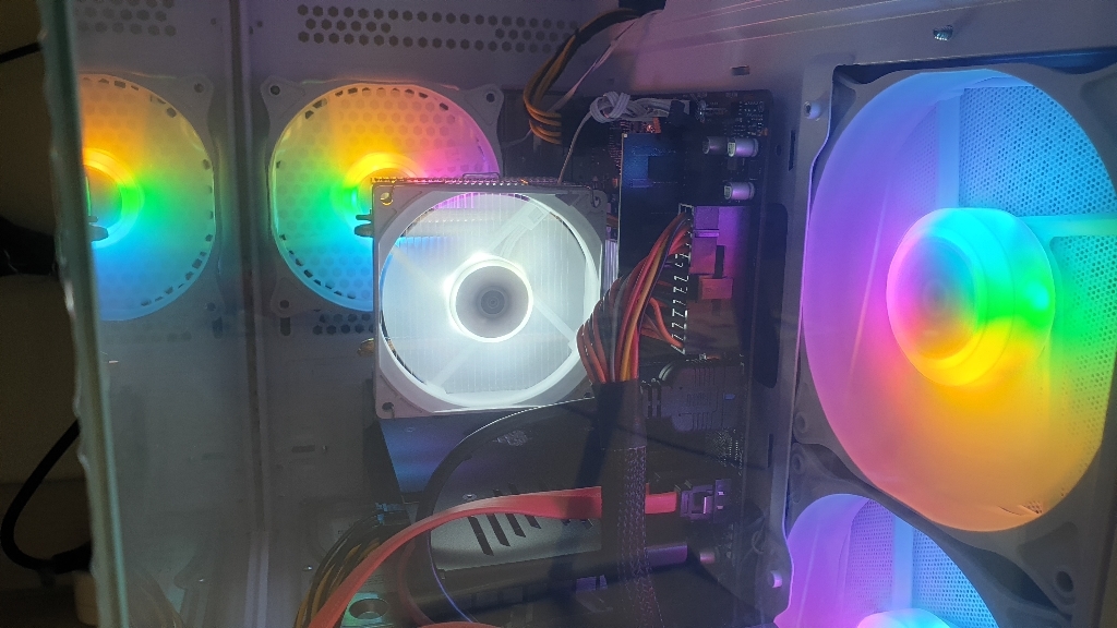측면이 강화유리로 되어 있어 내부 RGB 시스템이 고스란히 보여지고, 정리된 케이블 구성 덕분에 내부가 지저분하지 않습니다. 특히 화이트 케이스와 RGB의 조화가 탁월해 인테리어 효과까지 누릴 수 있습니다. RGB 팬은 소프트웨어로 색상 조절도 가능하여 원하는 분위기를 연출할 수 있었습니다.