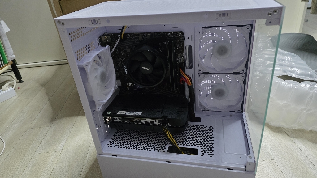 그리고 가장 좋았던 건 배송! 뽁뽁이로 컴포넌트 하나하나 꼼꼼하게 포장돼서 왔고, 케이스 내부도 움직이지 않게 잘 고정돼 있었어요. 윈도우11도 미리 깔려 있어서 켜자마자 바로 쓸 수 있었고, 드라이버 설치도 간편하게 안내문 줘서 금방 셋팅 끝냈습니다. 포장부터 설치까지 신경 쓴 티가 나서 믿음이 갔어요 ㅋㅋ