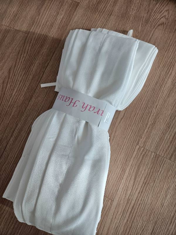 기존에도 화이트 쉬폰으로 사용했는데 이전꺼는 비침이 좀 심한편이라 이번에는 어느정도의 두깨감이 있으면서 살짝 햇살을 머금는 정도의 쉬폰 느낌을 찾았어요