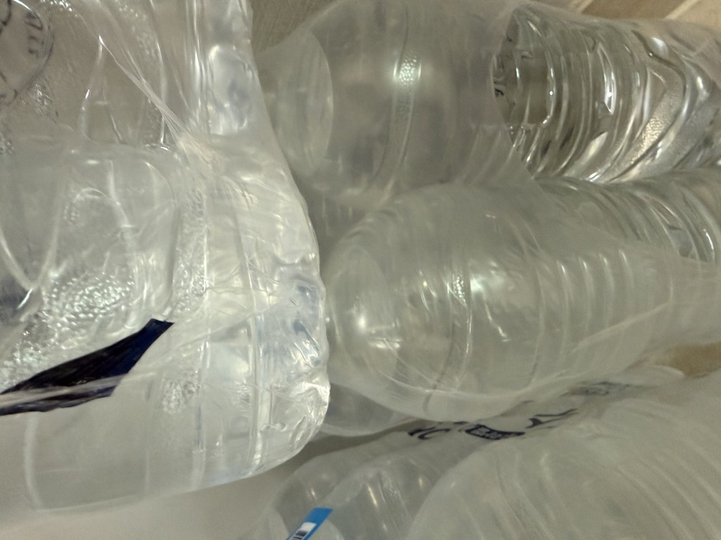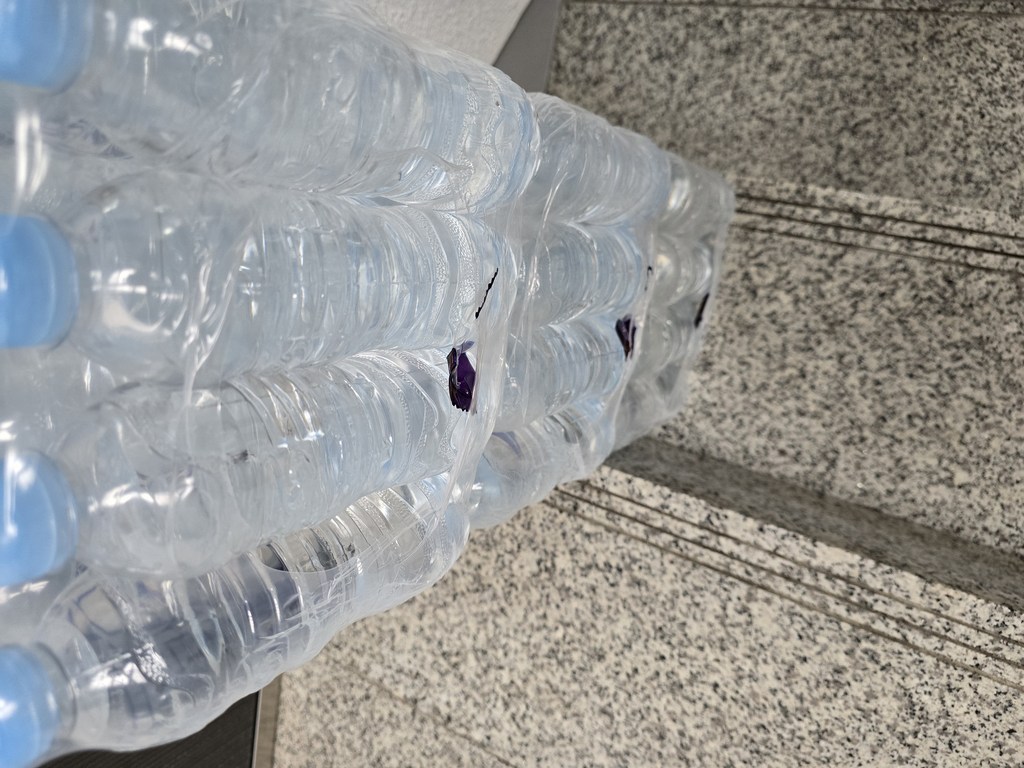생수병에 붙어 있는 라벨을 떼어내는 과정이