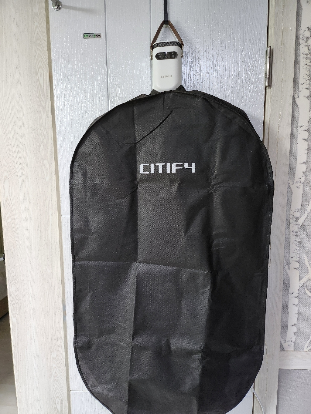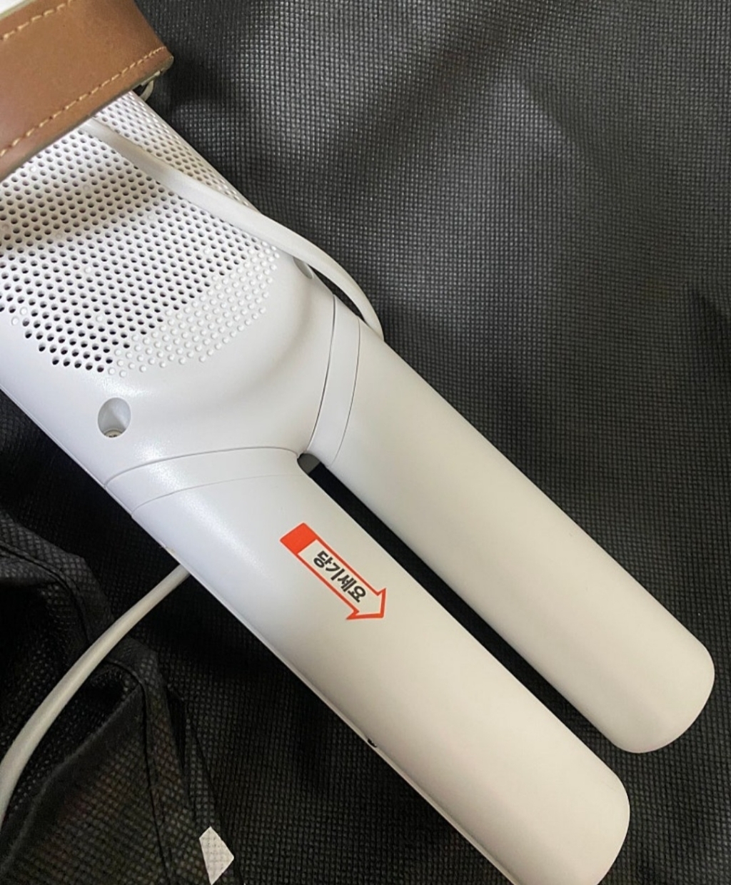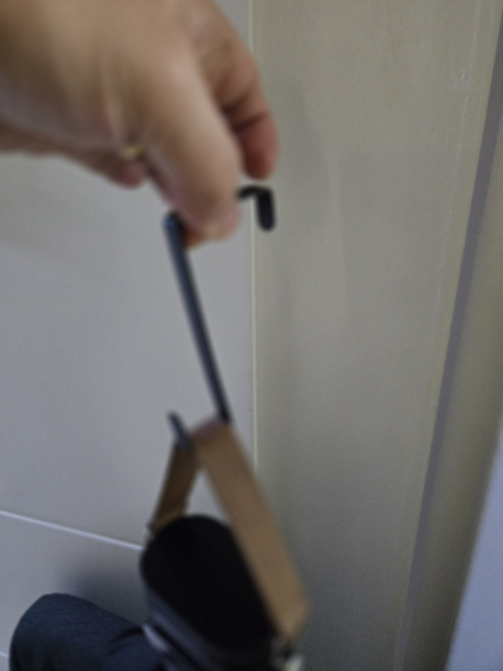 이 제품의 가장 큰 장점 중 하나가 휴대성이 뛰어나다는 점이다. 무게가 가벼워서 출장이나 여행 갈 때 캐리어에 쏙 넣어 다니기 좋고, 거치할 때도 별도의 옷걸이나 스탠드가 필요 없이 문고리나 옷장 안쪽에 간편하게 걸어놓을 수 있다. 개인적으로 가장 마음에 들었던 부분이다.