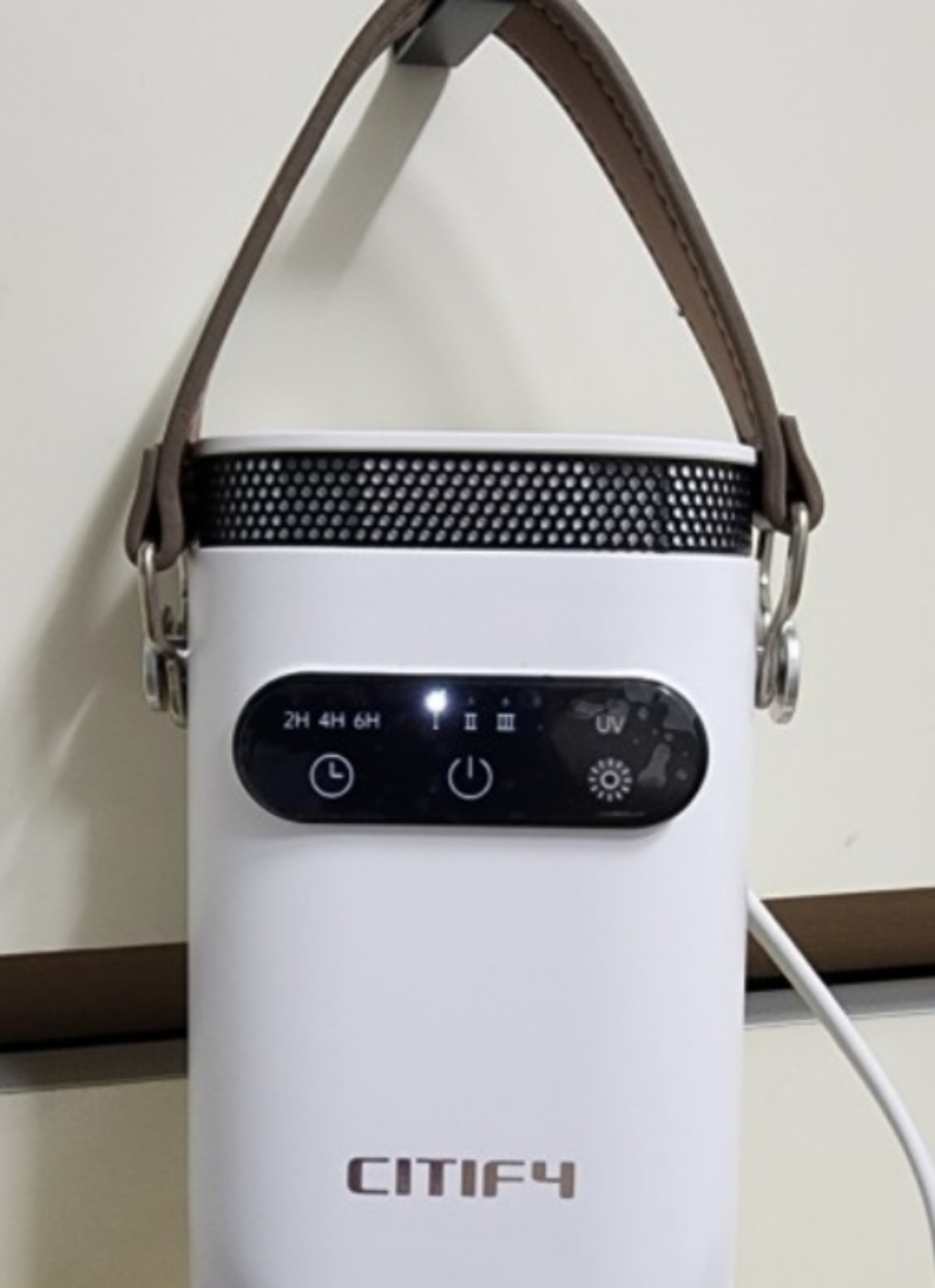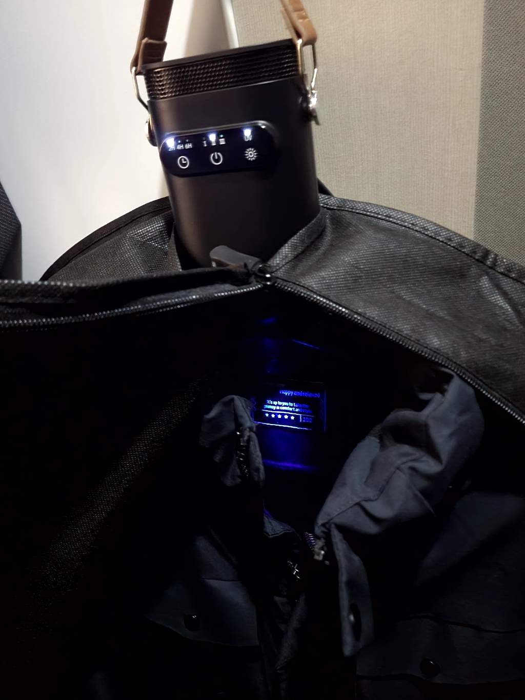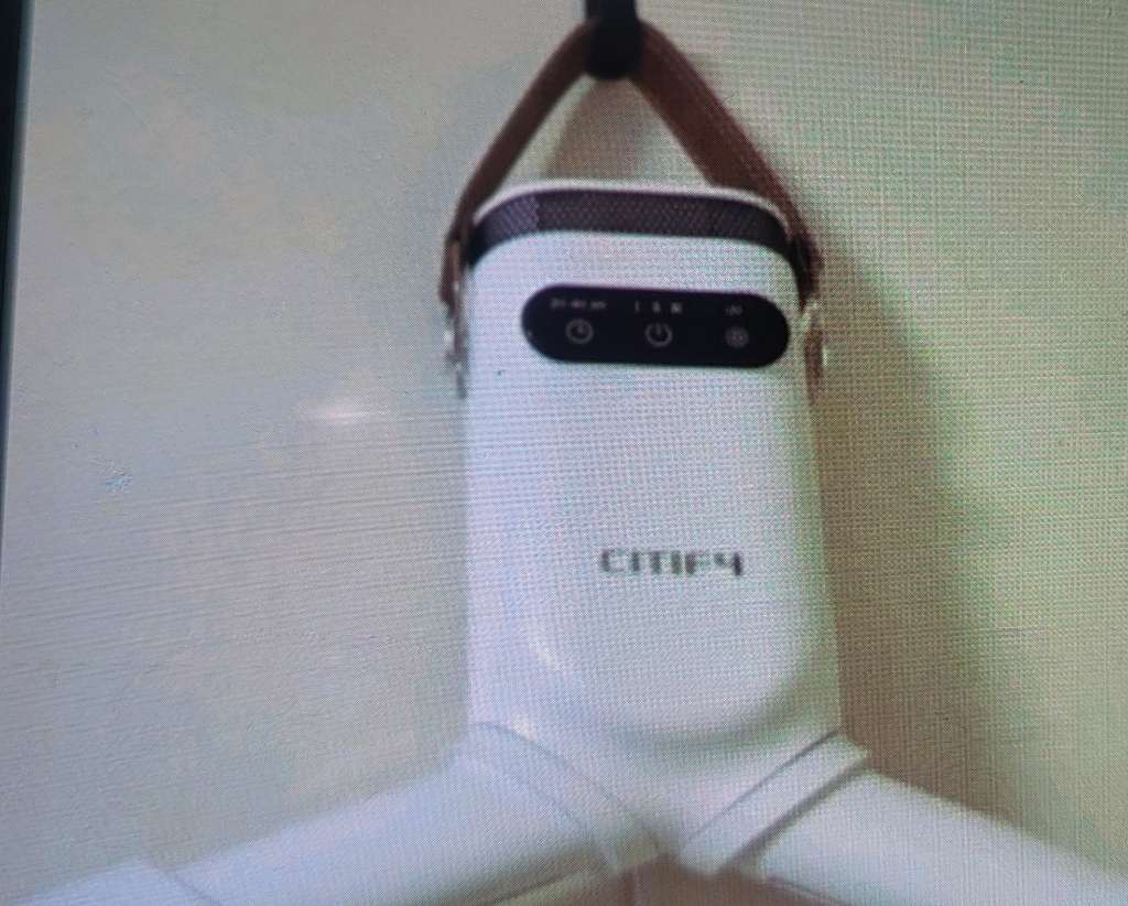이 제품의 가장 큰 장점 중 하나가 휴대성이 뛰어나다는 점이다. 무게가 가벼워서 출장이나 여행 갈 때 캐리어에 쏙 넣어 다니기 좋고, 거치할 때도 별도의 옷걸이나 스탠드가 필요 없이 문고리나 옷장 안쪽에 간편하게 걸어놓을 수 있다. 개인적으로 가장 마음에 들었던 부분이다.