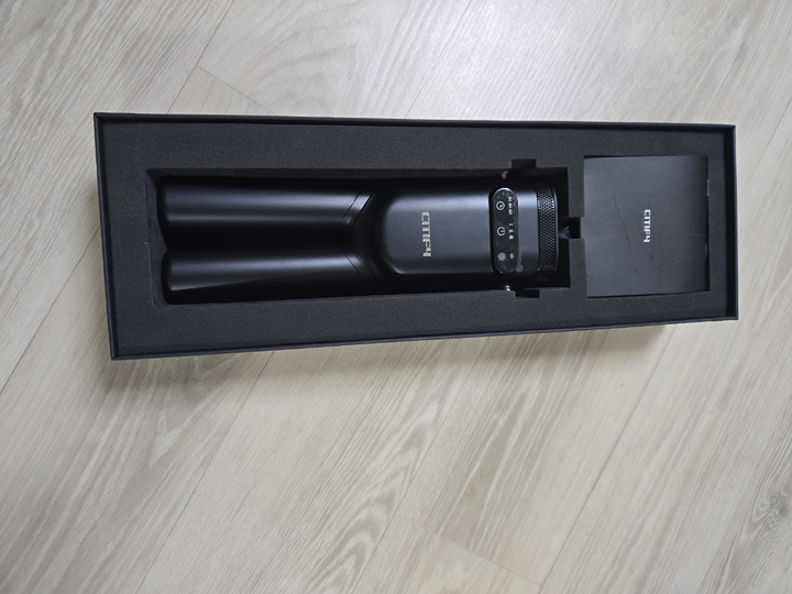 패키징부터 깔끔하고 고급스러운 느낌이 강했다. 본체가 단단한 폼 안에 잘 고정되어 있고, 추가 액세서리도 정돈된 상태라 개봉하면서부터 신뢰도가 높아졌다. 특히 손잡이 부분이 가죽 스트랩으로 되어 있어서 고급스러움을 더했고, 블랙 컬러의 본체가 미니멀하면서도 세련된 느낌을 줬다.
