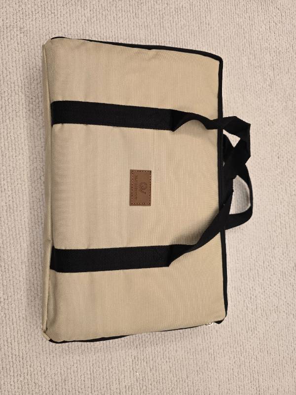 ️ 접이식이라 사용 후에는 납작하게 접혀서 캠핑박스 안에 쏙 들어갑니다. 부피가 작지만 사용 시에는 넓게 펼쳐져 여러 용도로 활용하기 좋아요. 무게도 가볍고 손잡이가 있어 이동도 편했어요.