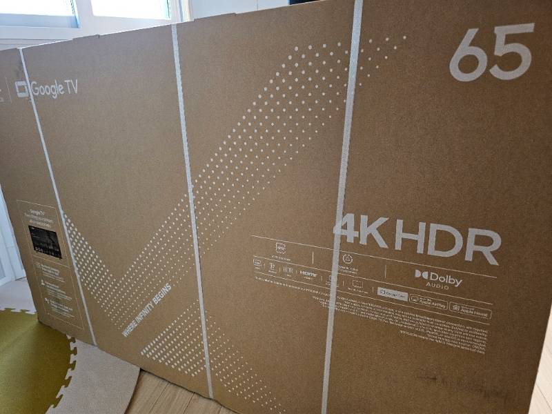 꺼내보니 정말 얇고, 화면이 깔끔하게 구성되어 있습니다. (공간도 조금 차지하고, 심플 그자체) – 구글앱 설치 기능이 있어서 좋습니다. 구글 TV라고 크게 써있는 만큼 와이파이를 통해 구글 접속이 가능하고 자동업데이트도 되며, 구글앱을 설치할 수 있어서 매우 편리합니다. (다양한 앱설치 – 방송채널 등) – 좋은화질: TV라면 화질이 정말 중요하죠, 4K UHD 해상도에 HDR10지원으로 매우 선명하고 밝은 화질을 느낄 수 있습니다. 또한 지연 부분은 아직까지 느껴보지 못했습니다. (게임용으로 구매한 은 아니라서 테스트는 안해봤지만, 입력 지연을 지원하는 모드가 있는 것으로 확인했습니다. – 사운드도 무난한 수준으로, 별도의 사운드 바 같은것을 연결하지 안하고 TV본품만 있어도 충분히 사용가능합니다.