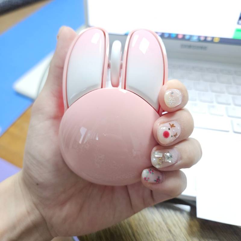 일단 생긴 게 너무 귀여워요. 근데 손 작으신 분들 아니면 그립감이 좋지 않을 듯 해요. 여성 전용 마우스같기도 하달까.. 이미 디자인부터가 그라데이션 핑크 토끼니까 타겟이 명확한 것 같기도 한데요. 귀여운 걸로 다 용서가 됩니다.