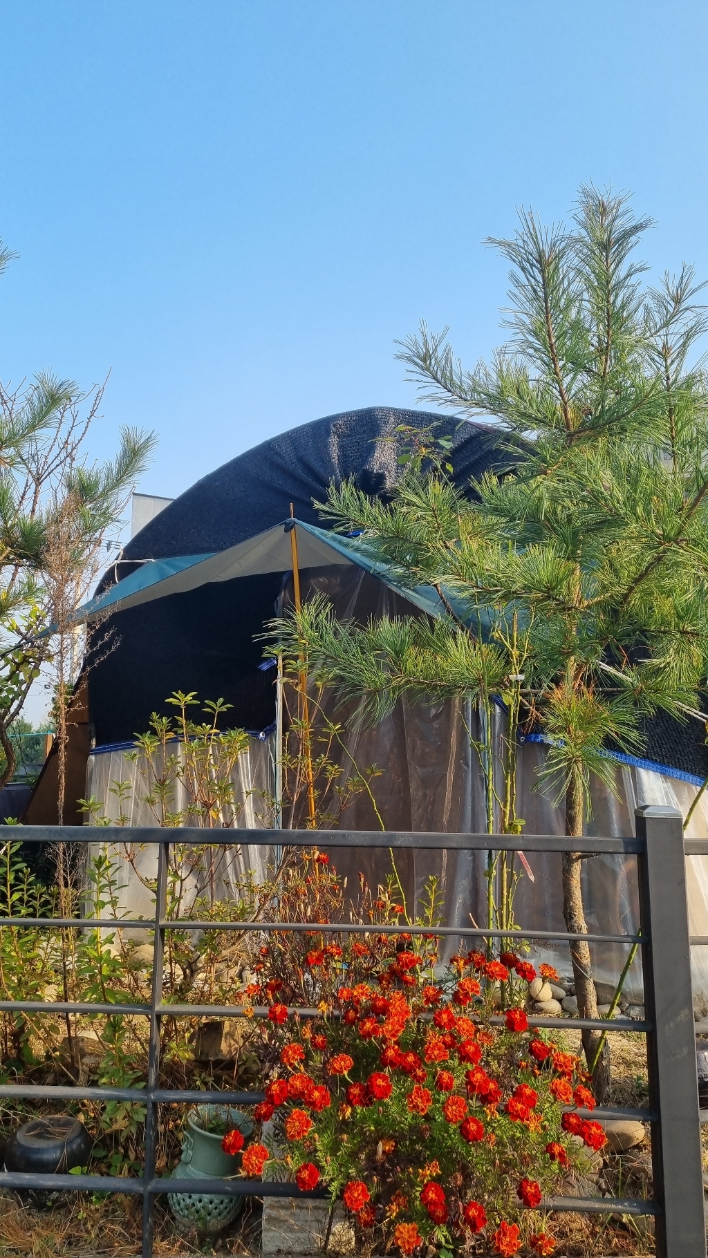 지금은 천막 하나사서 그위에 덮어 고정시켜놨는데