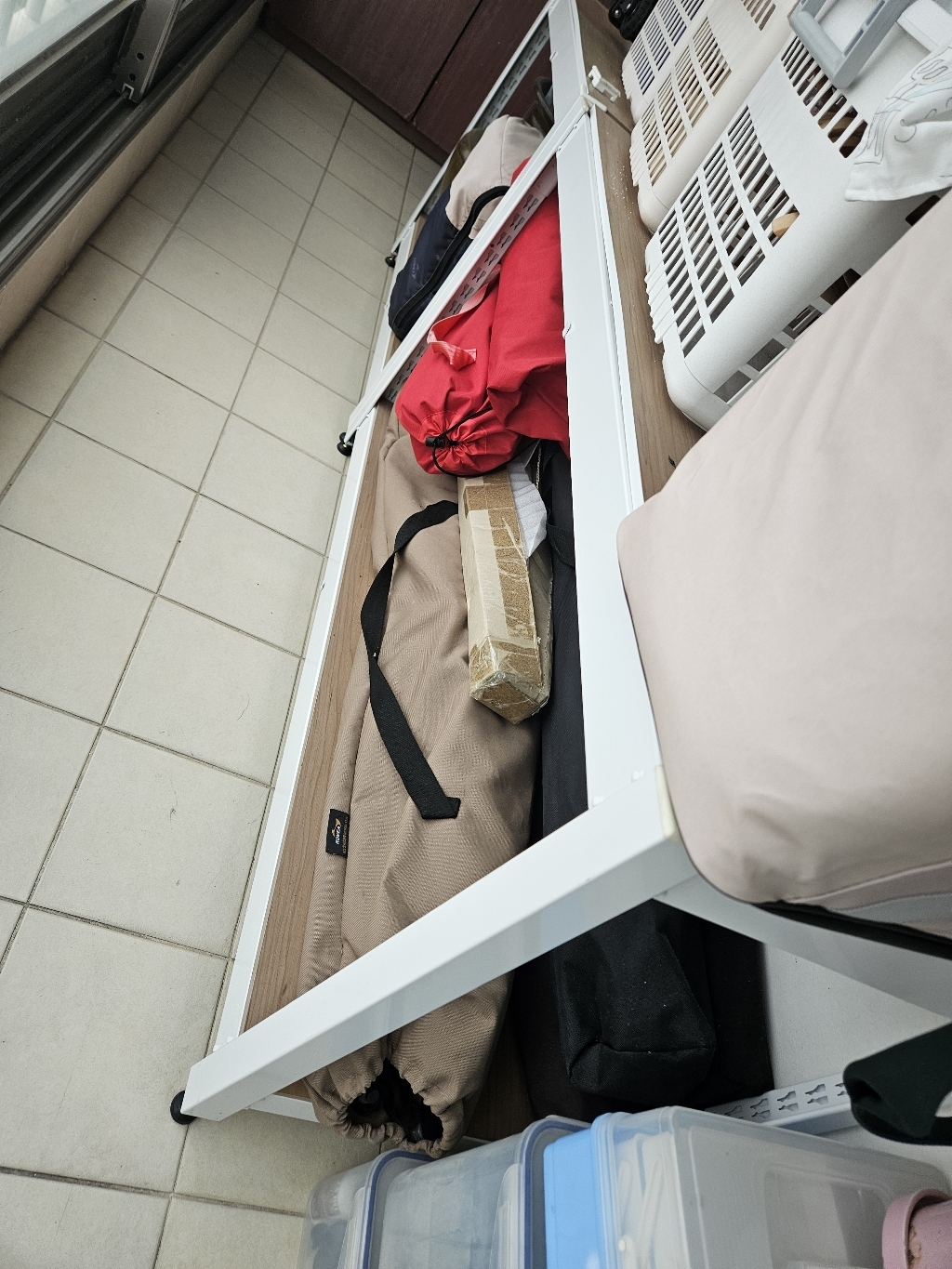 목마른넘이 우물판다고 꼴 못보고 수납선반사서 조립해서 정리한다고 해놨는데..초기장비 저렴이사면 결국 재구입한다고 처음부터 카페추천 브랜드제품만 구입해서 방치중인데 정남향 베란다 햇빛에 2년째 그대로 노출 ..수납포켓 변색이 생기더라구요.. 당근시도 했는데 ..갈거라네요..언젠가 ……