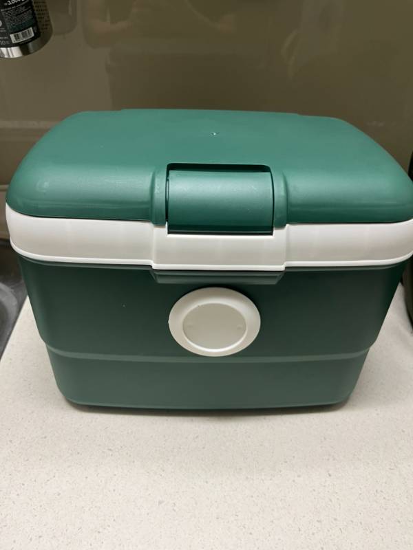제품을 받아보니 전체적으로 깔끔하고 단정한 마감이 먼저 눈에 들어왔고, 용량이 크진 않지만 무게가 약 0.9kg 정도밖에 안 된다고 해서 기대됐는데 실제로도 들어보면 가벼워서 휴대하기 매우 편했어요. 뚜껑을 여닫는 레버 구조도 직관적이고, 내부 밀폐력도 꽤 괜찮다고 느꼈어요. 냉기가 비교적 잘 유지되더라구요? 실제로 실외 기온 30도 정도에서 얼음팩을 넣고 3시간 정도 지나도 꽤 많은 얼음이 남았어요.