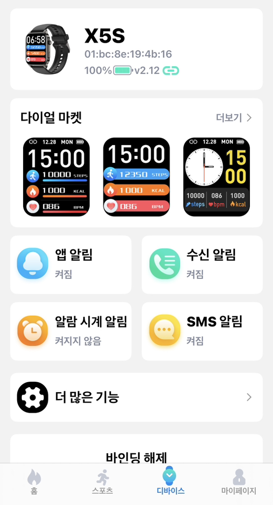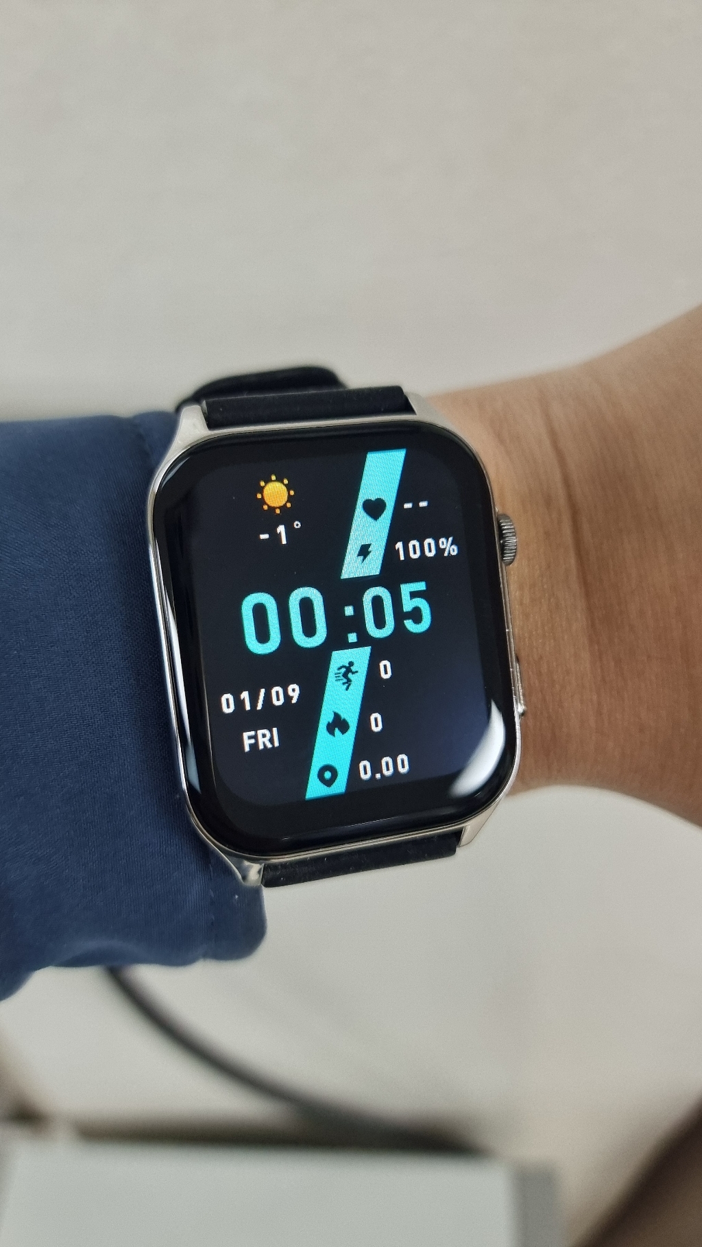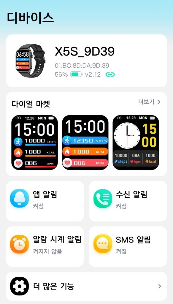 X5S는 1.91인치 대화면을 갖추고 있어서 문자/알림/건강 통계 확인할 때 시원스럽고 보기 편함.