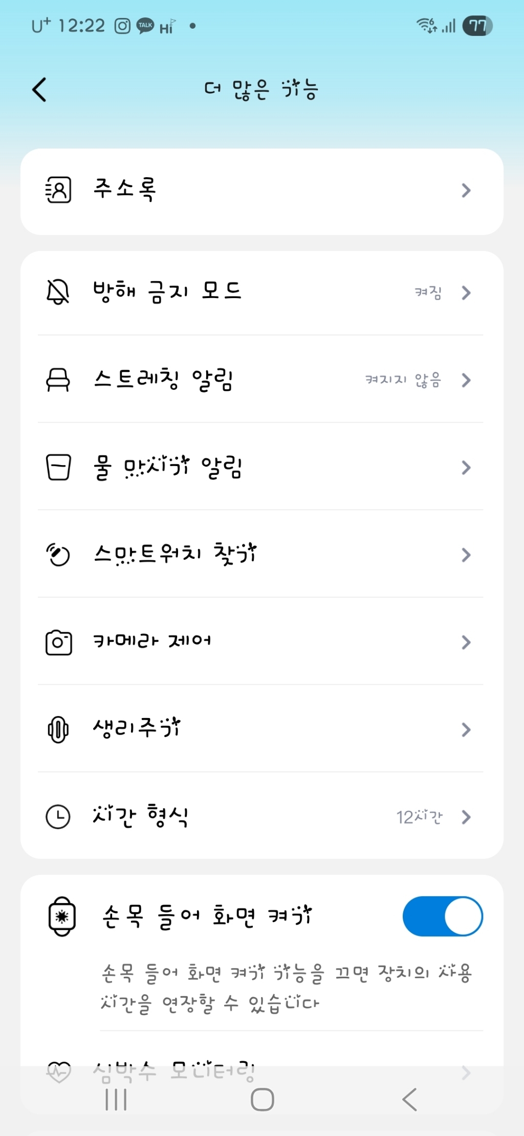 건강보조기능부터 전화수발신, 메시지 수신까지 탑재되어있어 정말 편하고 신셰계였어요~