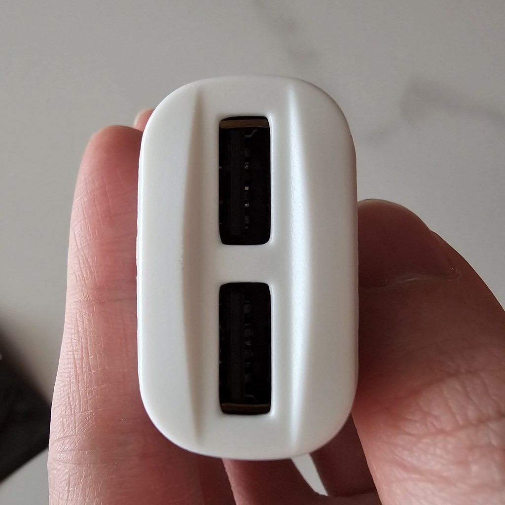 두 개의 USB 포트가 있어서 아이폰이든 갤럭시든 케이블만 맞추면 동시에 충전할 수 있고, 총 출력이 2.1A여서 스마트폰 두 대 정도는 무난하게 충전 가능해요.
