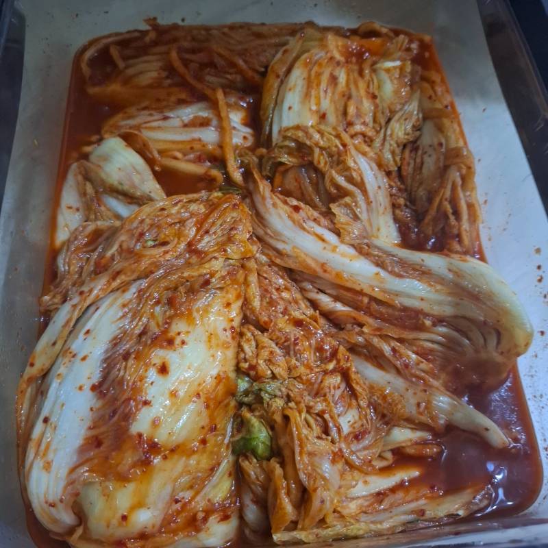 아삭한 식감이 잘 느껴지지 않지만,, 김치찌개나 볶음보다는 그냥 생김치로 먹기 좋은 타입입니다. 처음 먹었을 때도 괜찮았고, 며칠 지나 살짝 익었을 때 더 맛있었으면 좋겠네요.