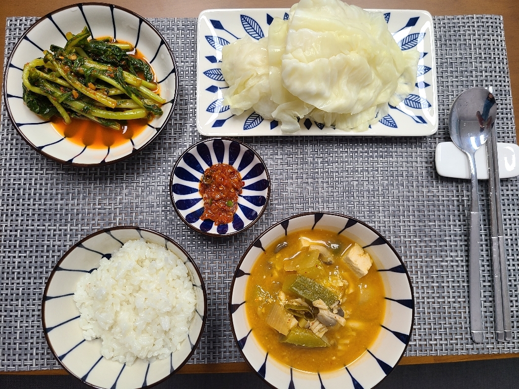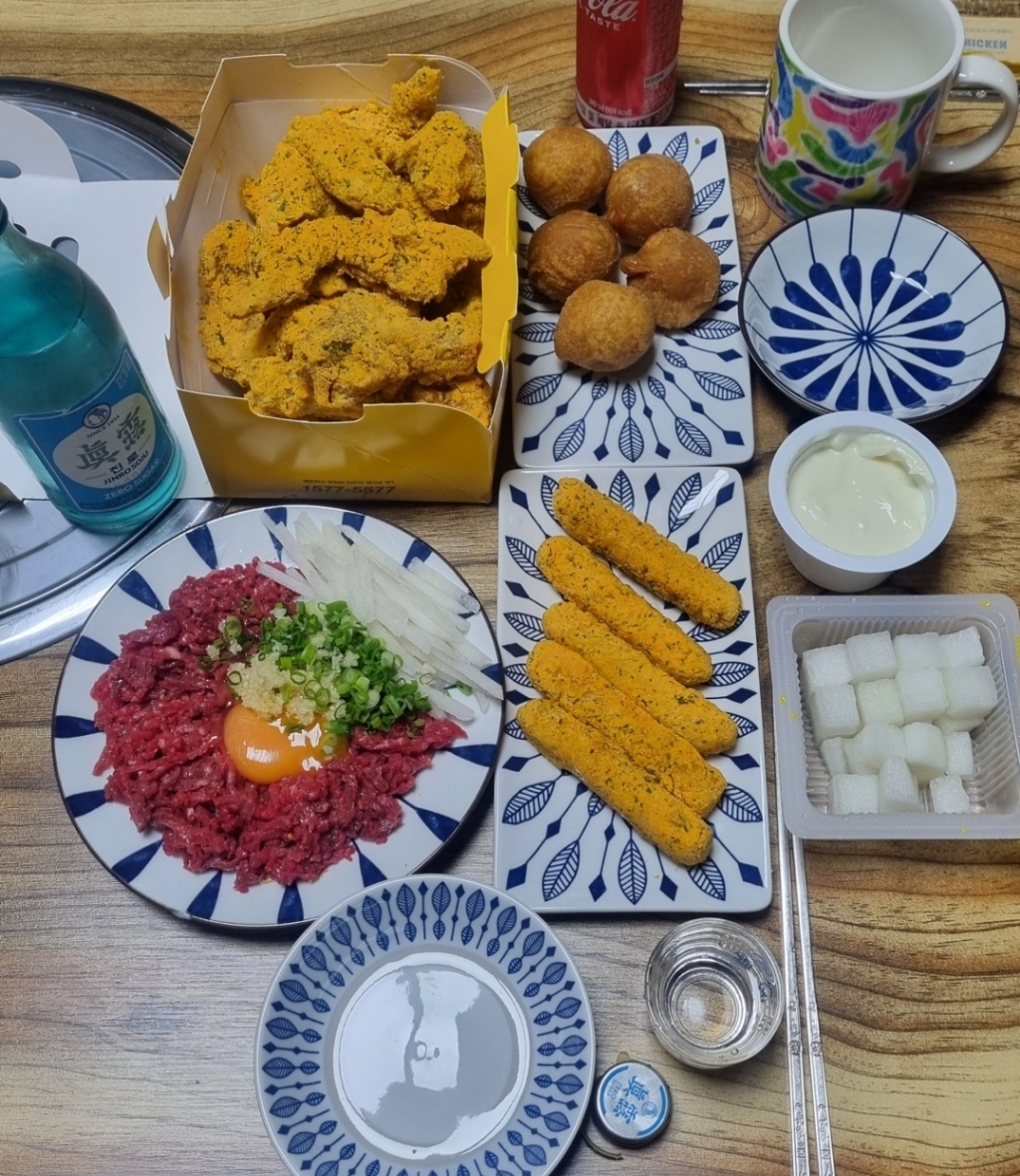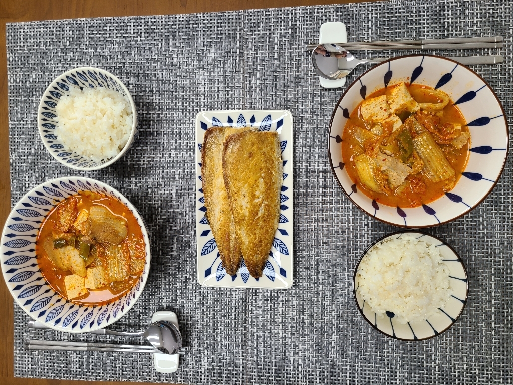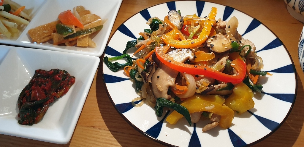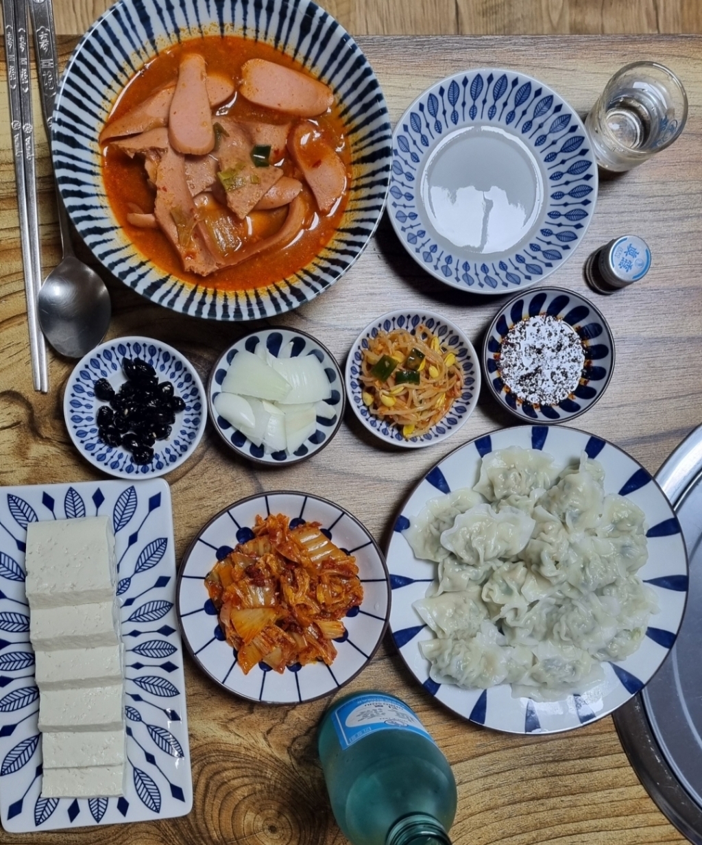 심플한 디자인에 식기에 반찬을 담으니 더욱 더 돋보이게 해주는 식기의 무늬가 음식을 더욱 살려 주는 것 같아요
