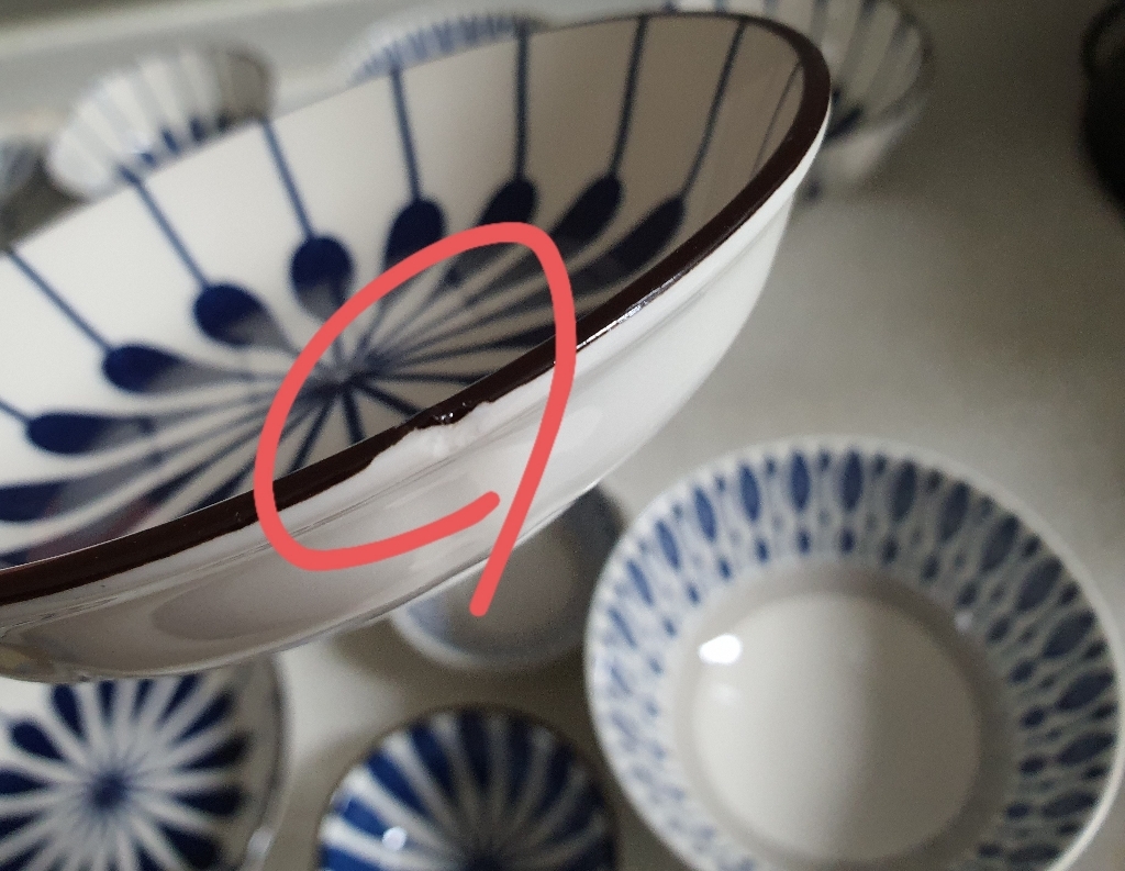 동그란 큰접시 한 가운데 이렇게 큰 금이 있어요ㅡ