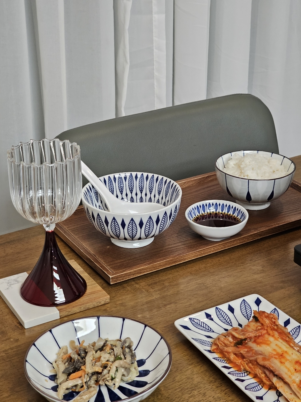 다양한 종류가 있어서 아침식사부터 저녁까지 모든 식사를 커버할 수 있어요. 특히 찬기와 디저트 접시는 반찬이나 디저트를 담기에도 적당해서 유용하게 쓸 수 있었어요.