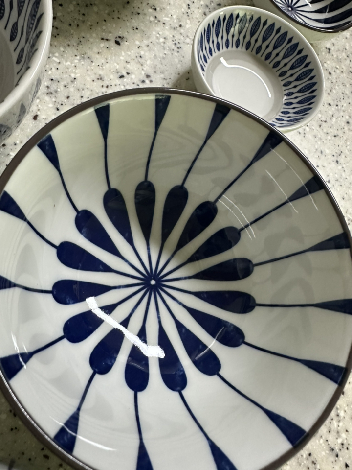 문양의 컬러가 얼룩덜룩한건.. 식기 특징인거 같아요.