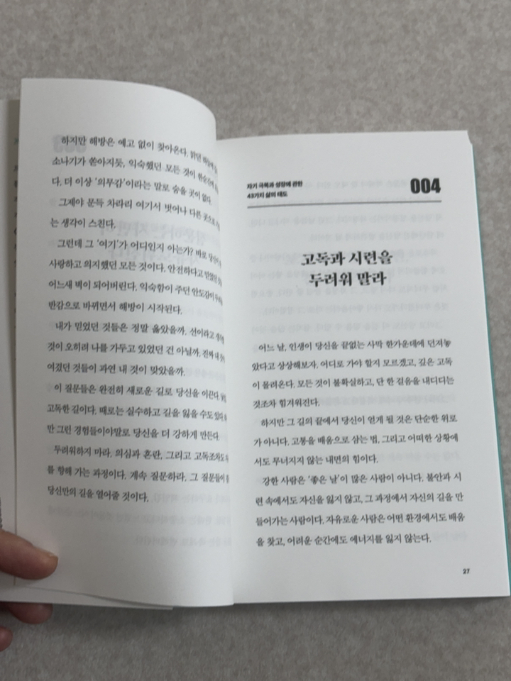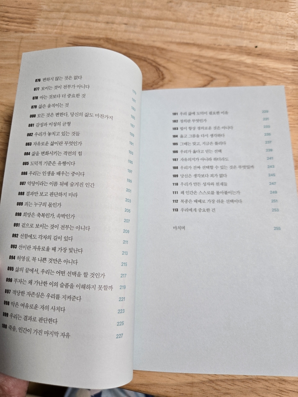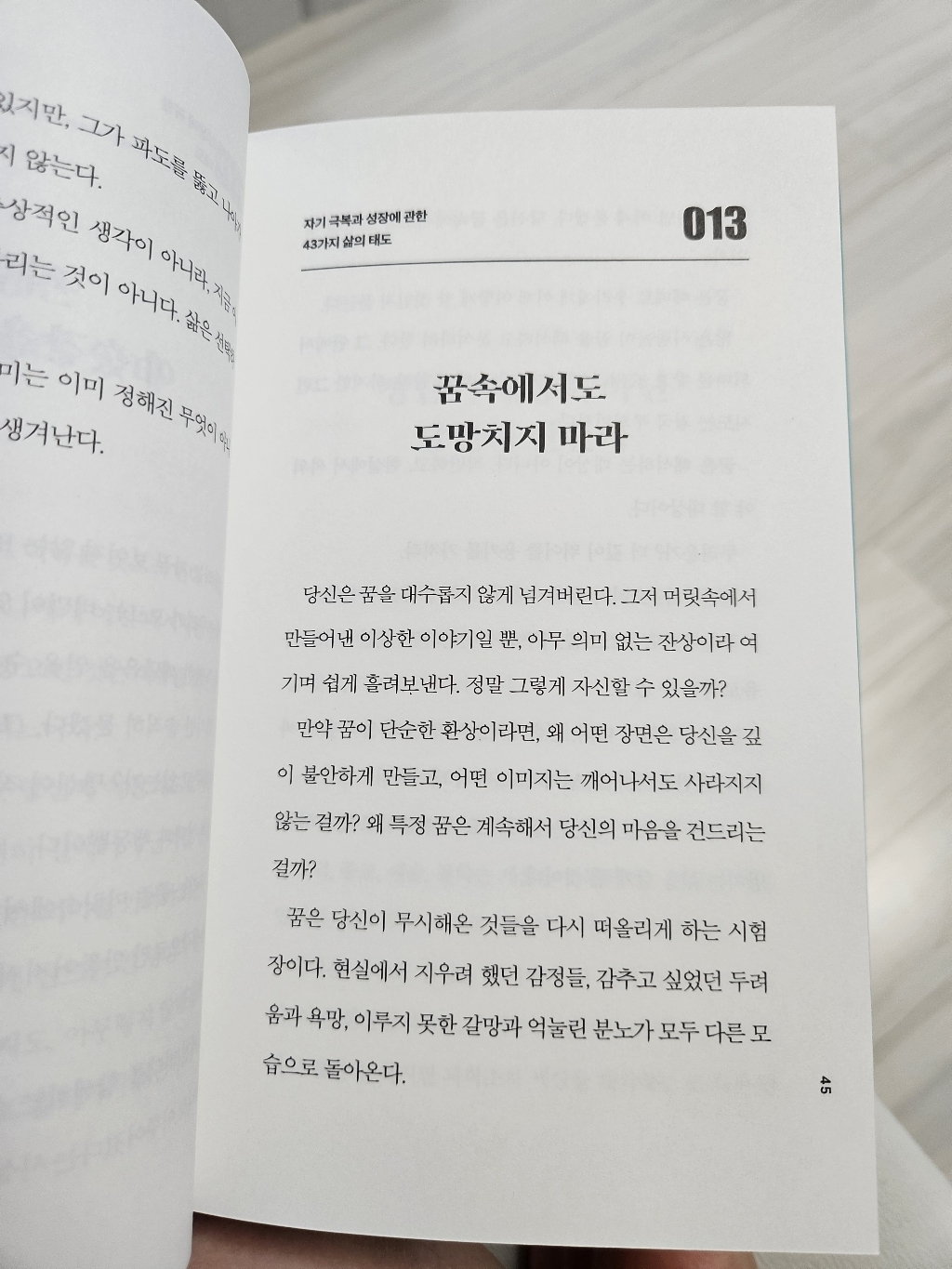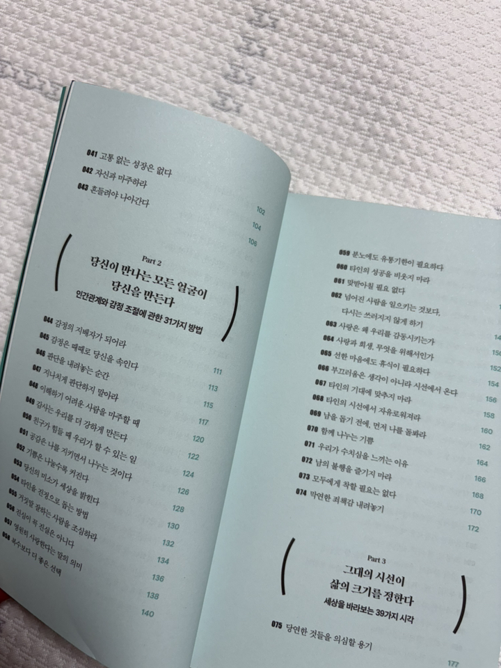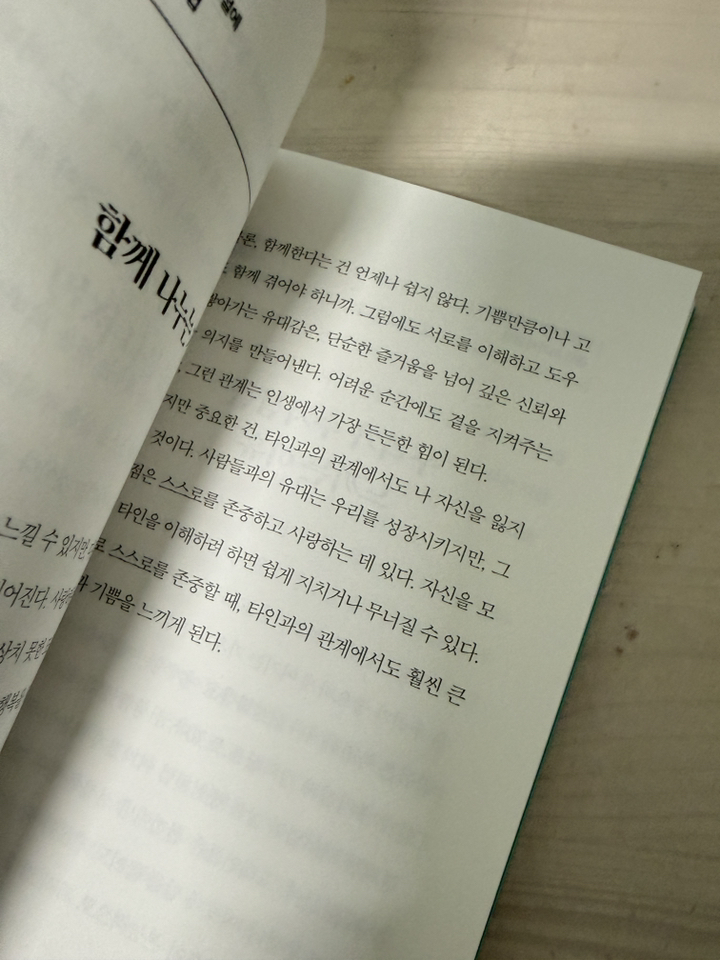 내용은 자기 극복, 인간관계, 감정 조절, 삶을 대하는 태도 등 현실적인 주제들로 나누어 독자의 몰입도를 높입니다.